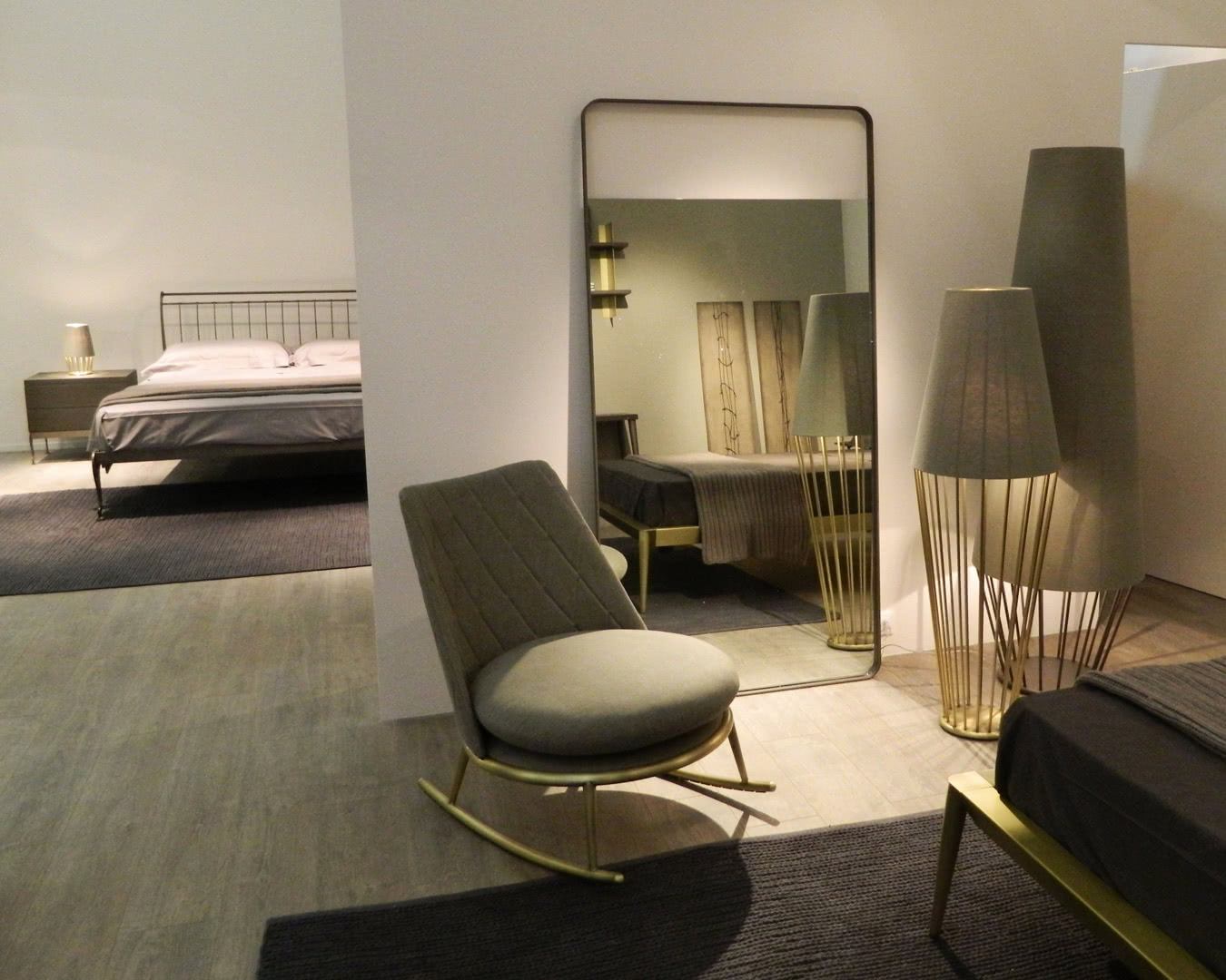 Poltrona a dondolo moderna di design Aurora con struttura in ferro.