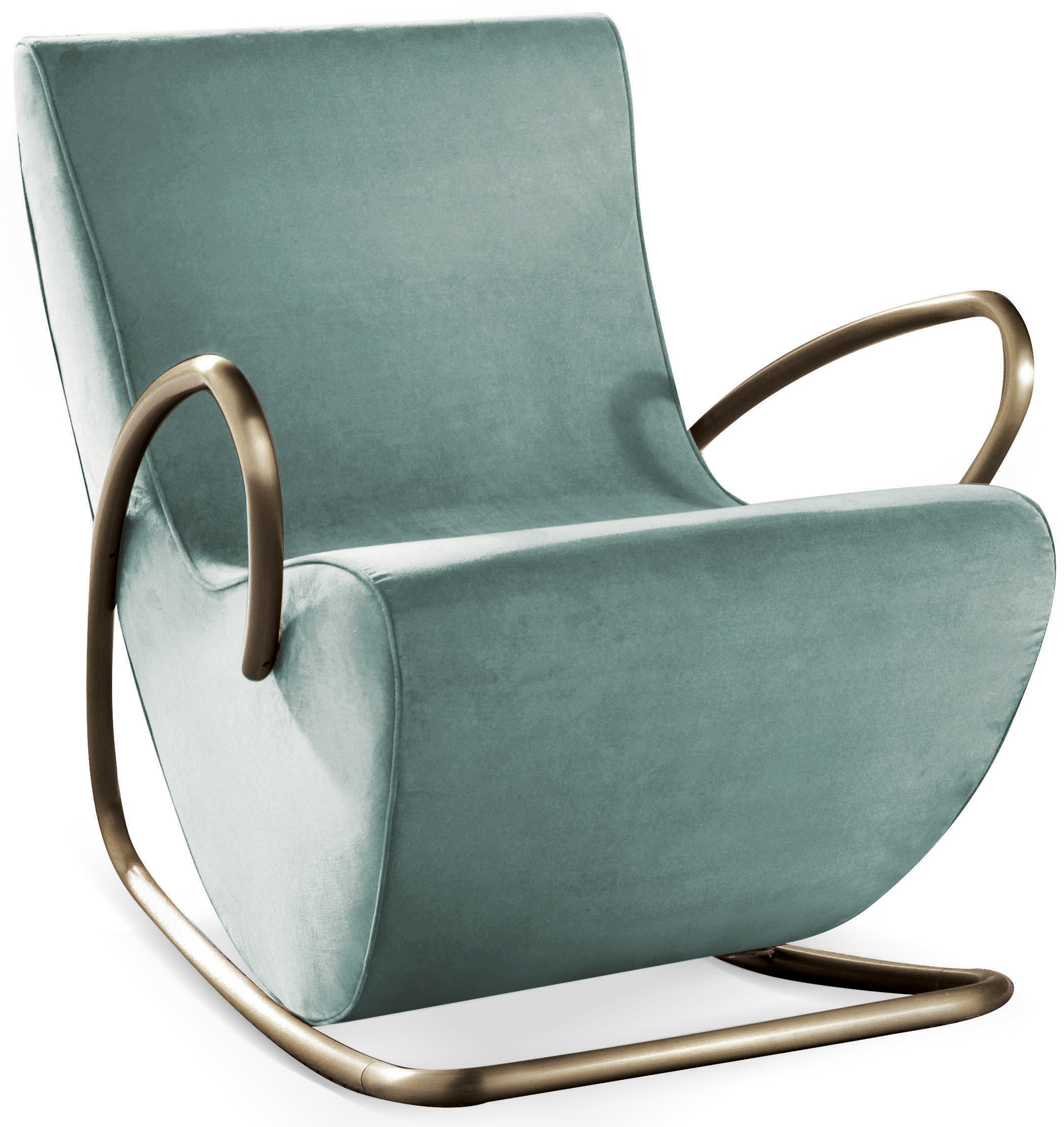 Poltrona a dondolo vintage di design Camilla con struttura in metallo.
