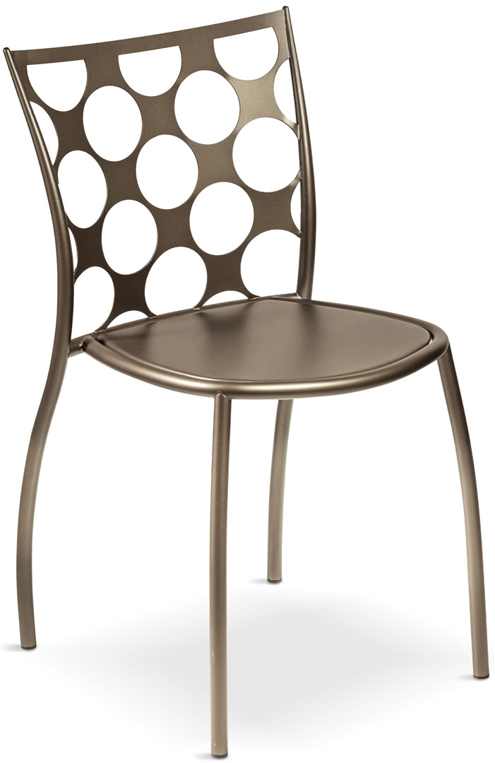 Le gambe sono in metallo tubolare, curvato e conificato, e lo schienale in ferro tagliato a laser. La seduta è disponibile nella versione in ferro con perimetro di rinforzo in tubolare o imbottita. Tutte le saldature sono realizzate a filo e a ottone con levigatura manuale. Le sedie Julie cerchi sono impilabili.
