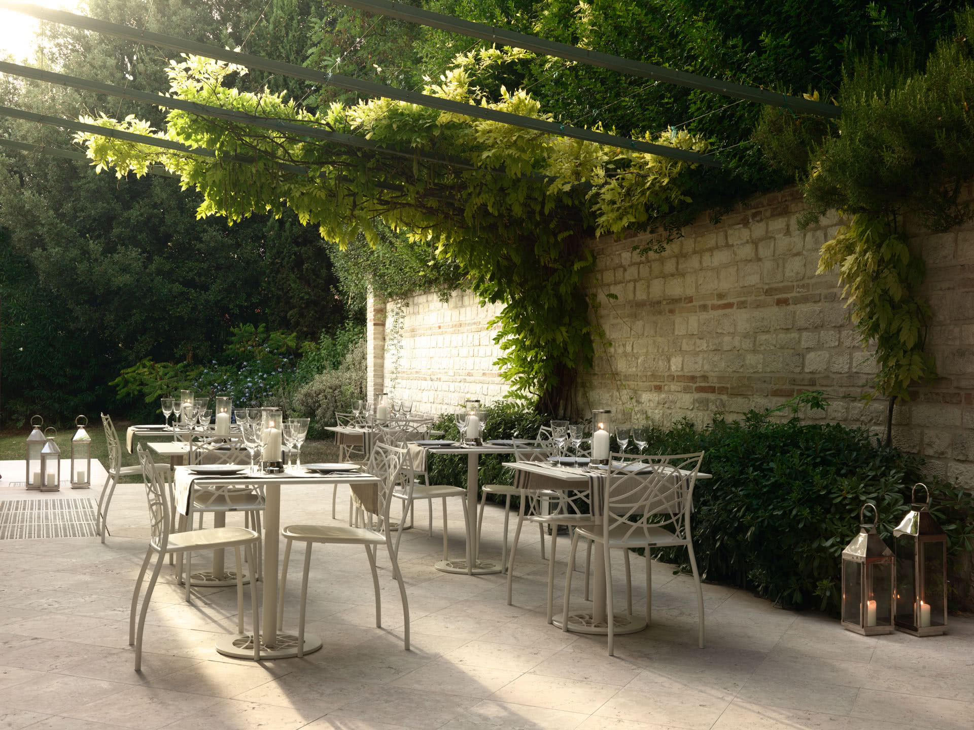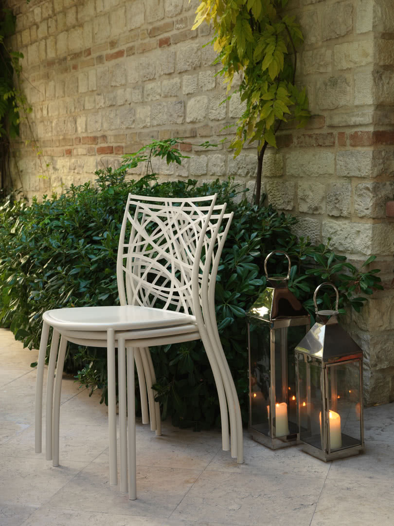 Le gambe sono in metallo tubolare, curvato e conificato, e lo schienale in ferro tagliato a laser. La seduta è disponibile nella versione in ferro con perimetro di rinforzo in tubolare o imbottita. Tutte le saldature sono realizzate a filo e a ottone con levigatura manuale. Le sedie Julie sono impilabili.
