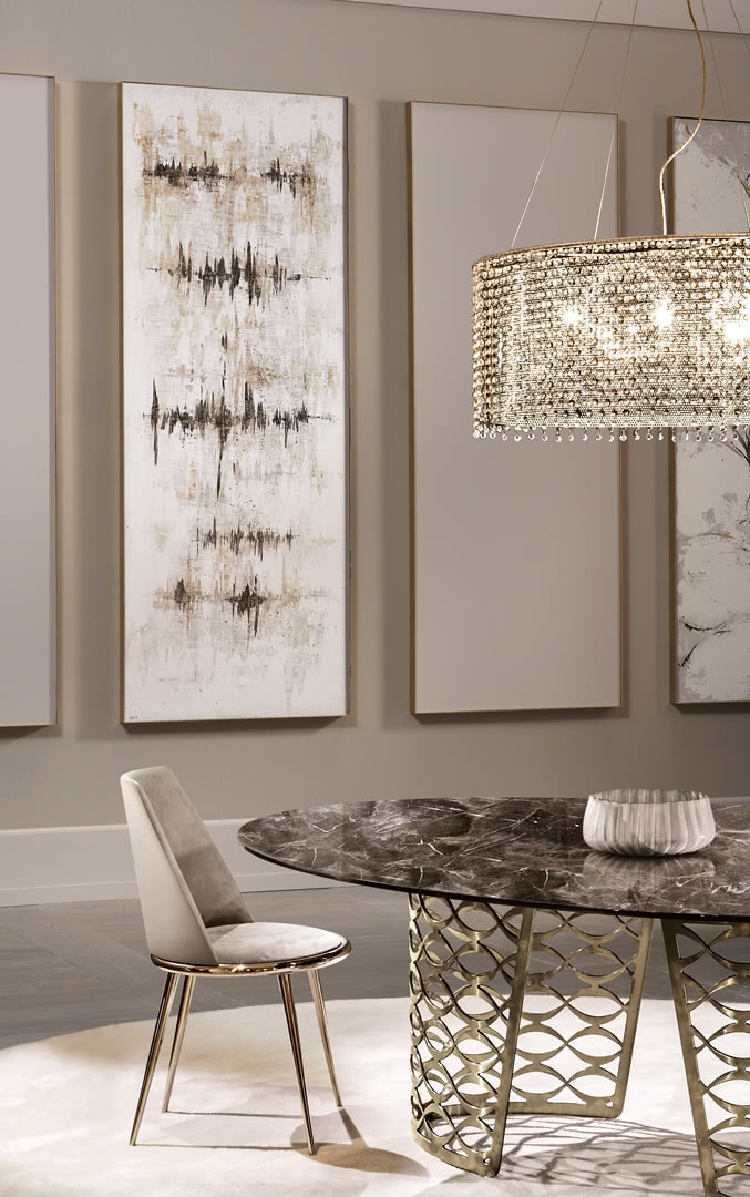 Il quadro è realizzato su un pannello in legno rettangolare da cm 70x190 h, da poter posizionare sia in orizzontale che in verticale; la decorazione è realizzata con stucchi e utensili di vita quotidiana come le posate. I colori perlati e terrosi creano degli elettrogrammi artistici.