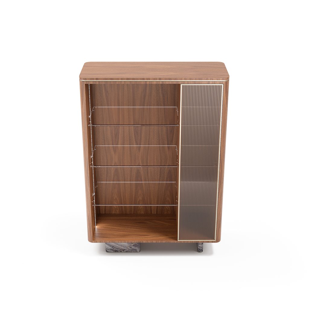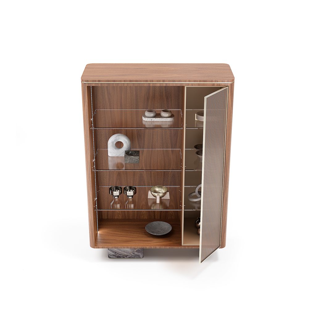 Nr. 1 anta in vetro cannettato bronzato. Ripiani interni in vetro bronzato.