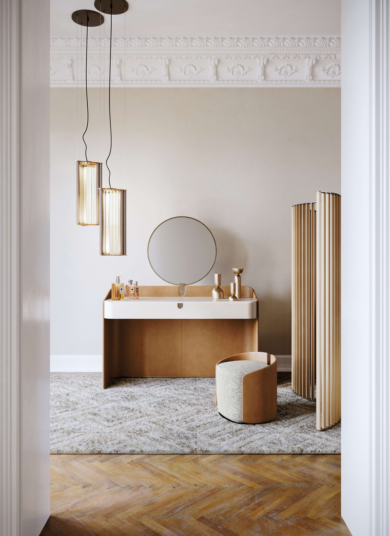 L’armonia tra le forme morbide e sinuose danno vita ad un oggetto eterno ma dal segno pulito e contemporaneo; le linee semplici e i materiali utilizzati gli conferiscono un aspetto raffinato, dove il profondo cuscino viene avvolto da una scocca in maniera molto sofisticata per seguire l’andamento curvo della seduta e mantenere le cuciture a vista perfettamente diritte e regolari.