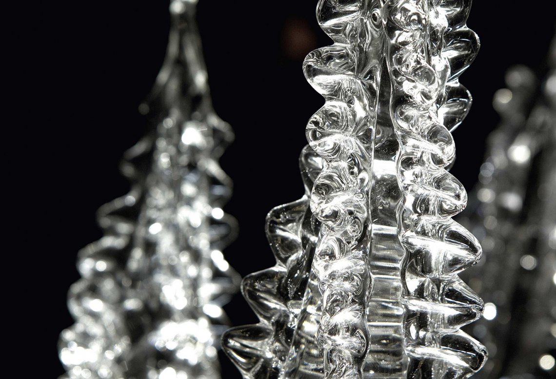 In Lewis side table a bundle of metal pipes that ends up with handmade glass points crosses a precious marble top: the glass points, realized by master glassmakers in Venice area, are enlightened by leds placed inside of metal pipes. More than a piece of furniture this exclusive element is able to enhance a great atmosphere in a refined and elegant environment.
