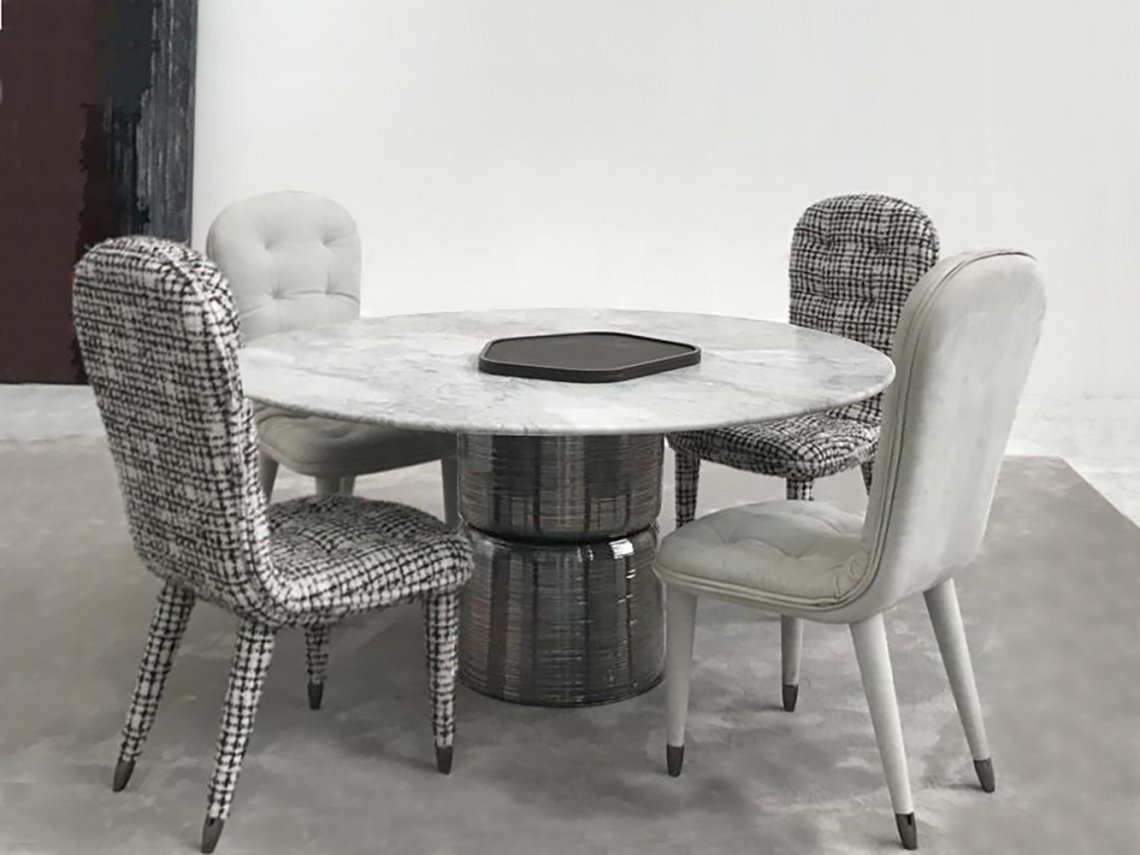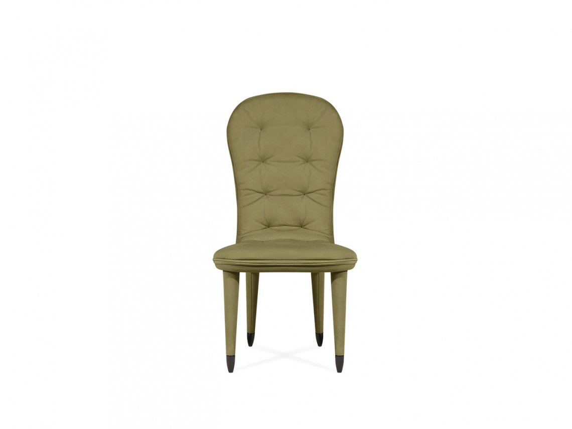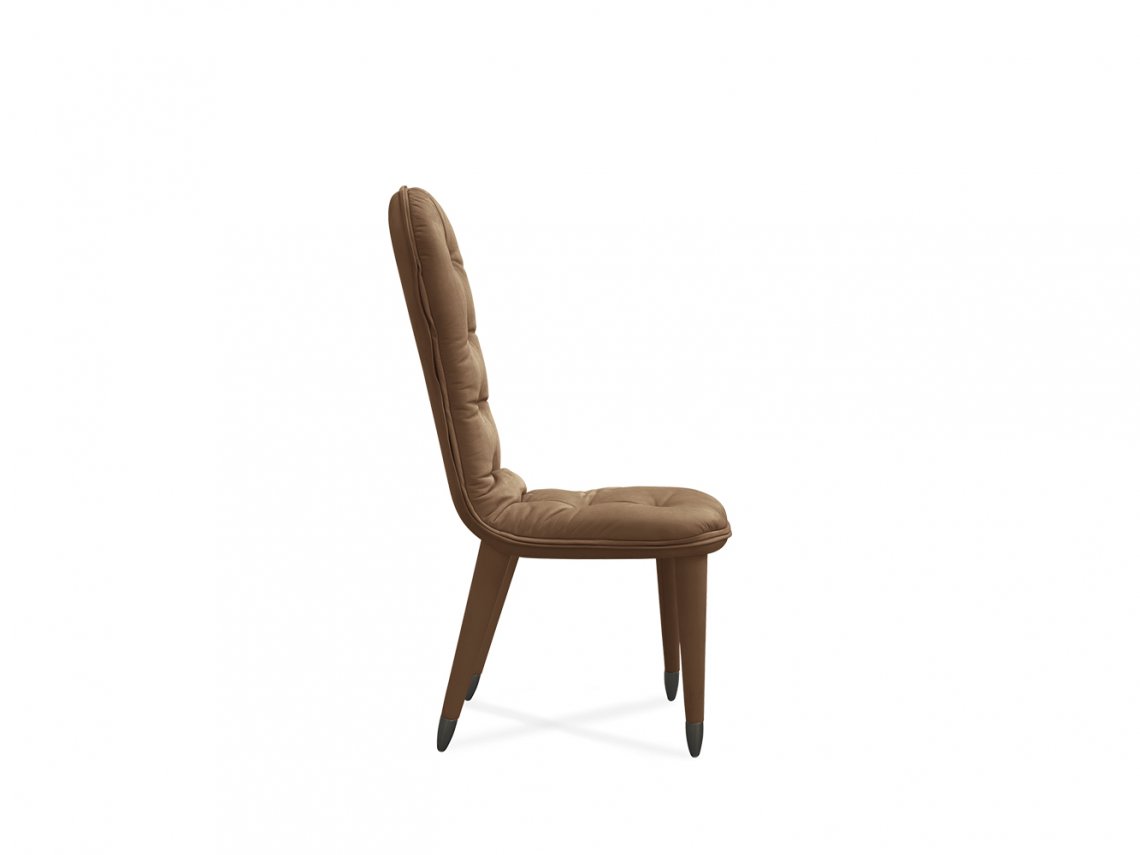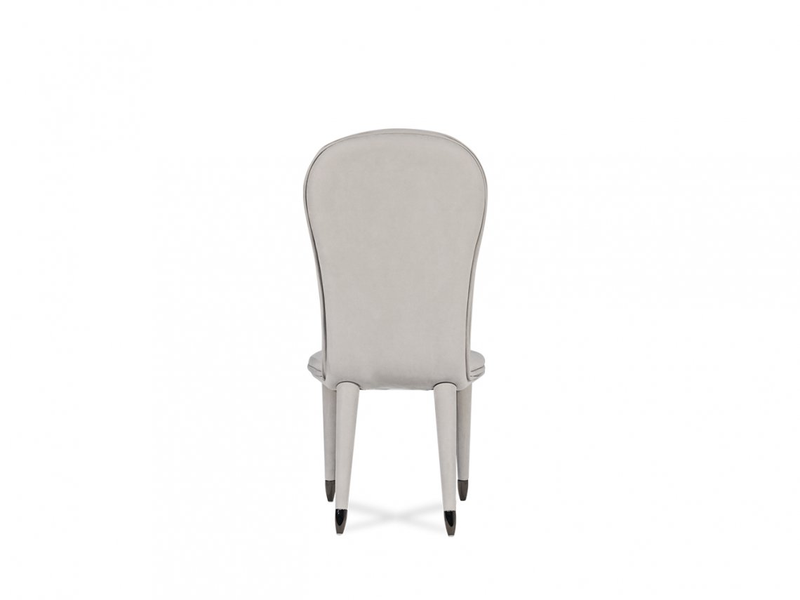 Miki chair is characterized by a soft leather upholstery on the entire structure and on the legs except for the end of them decorated with metal details. The rounded backside that recalls a classical shape finds a perfect balance with the seat that is embellished with stitching that makes it more contemporary. Besides the leather version, it’s possible selecting a precious fabric from a wide range of possibilities.