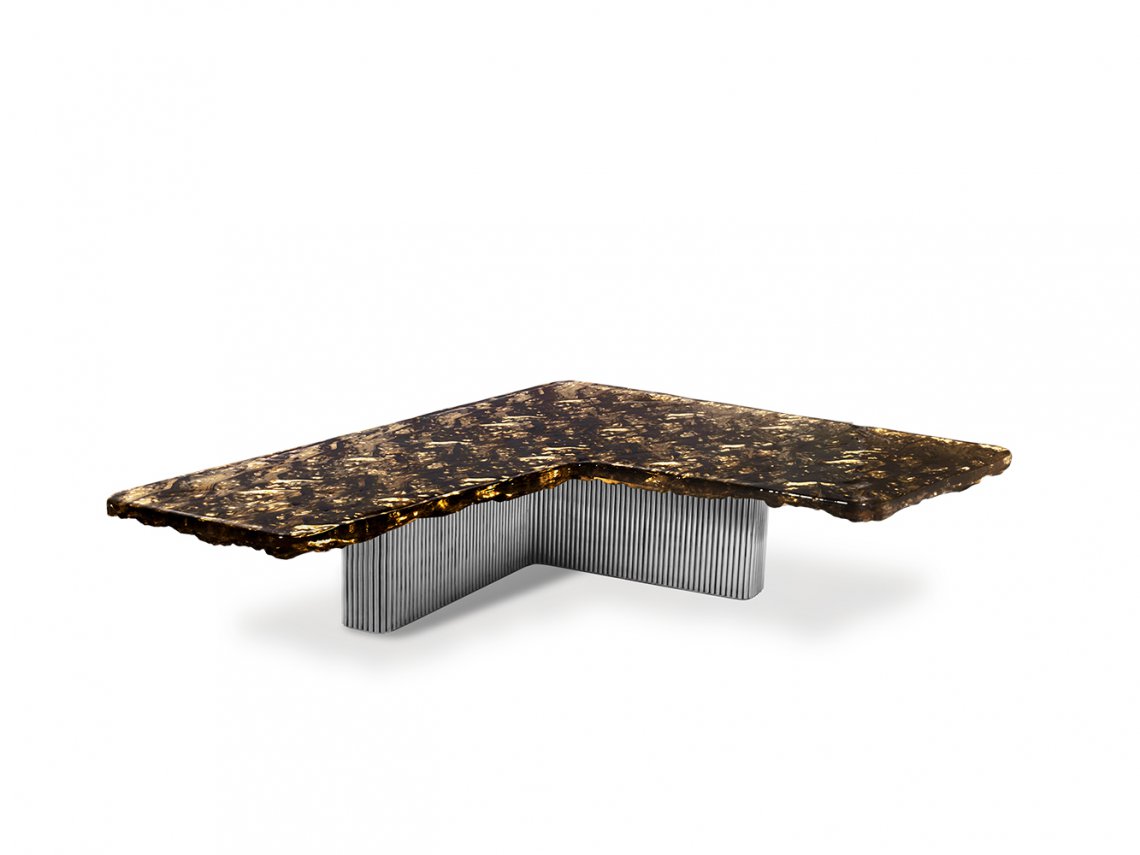 This coffee table is the marble version of the iconic Miller table with cast glass top. Its marble top is available in a wide range of natural marbles with completely rounded edge. The cylindrical base consists of several thin metal rods connected to each other.