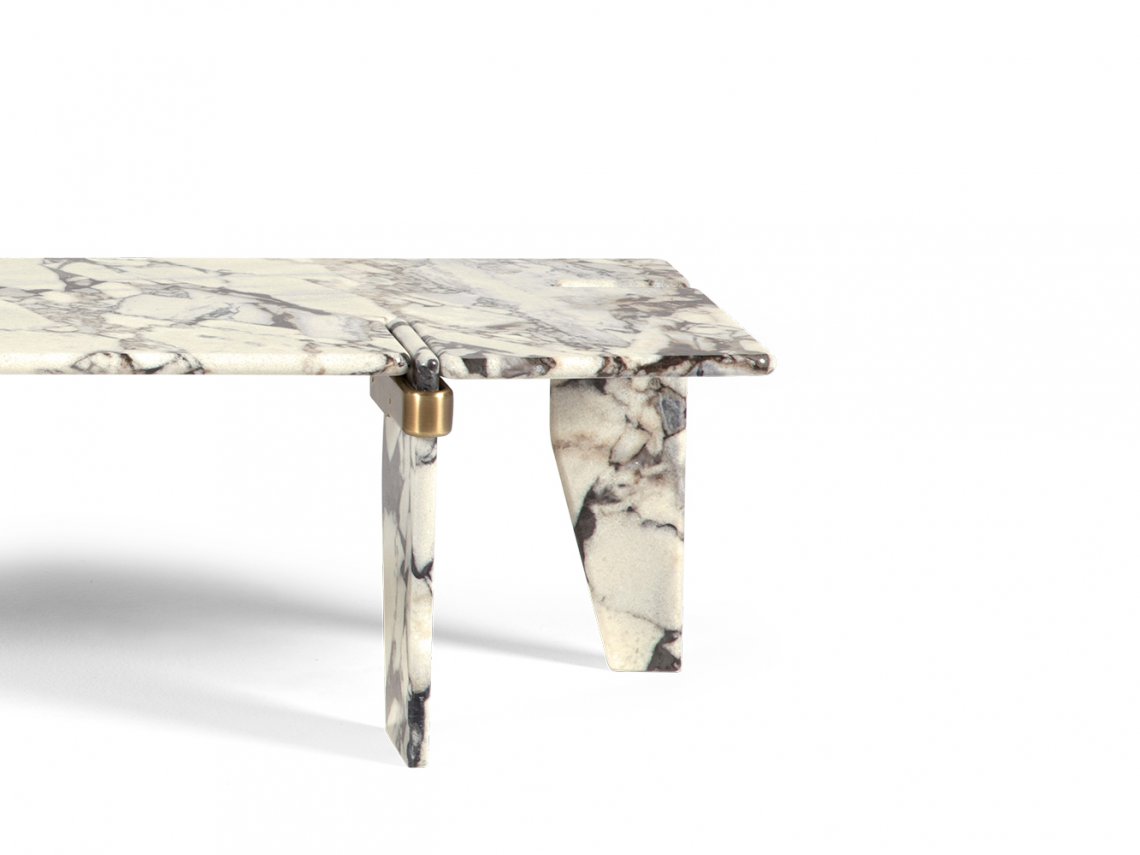 The metal version of the coffee table Overlap is realized by casting bronze into special molds made of sand. The sculptural look of the surface and the use of bronze metal as raw material makes this item a contemporary artwork.