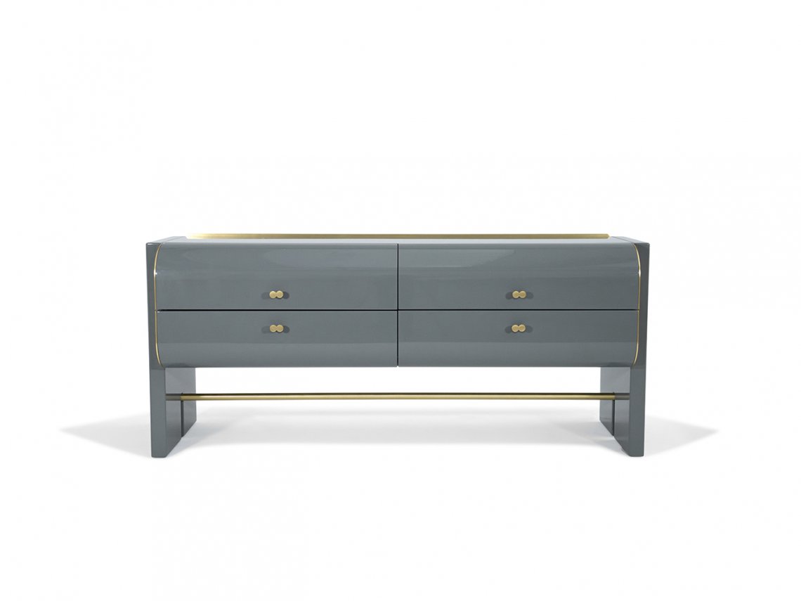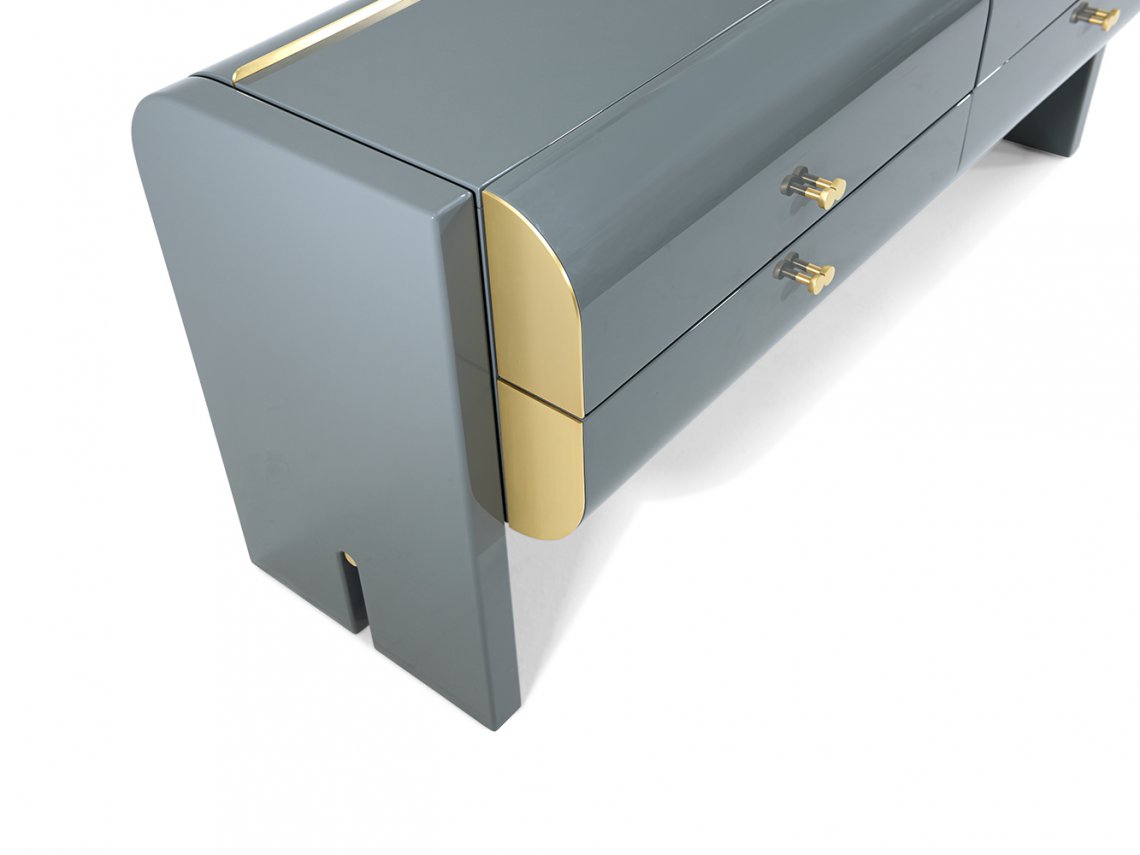 Oskar was born from the desire to create a night table with simple lines emphasized by significant volumes. It is available in glossy or matt lacquer with brushed gold metallic details.