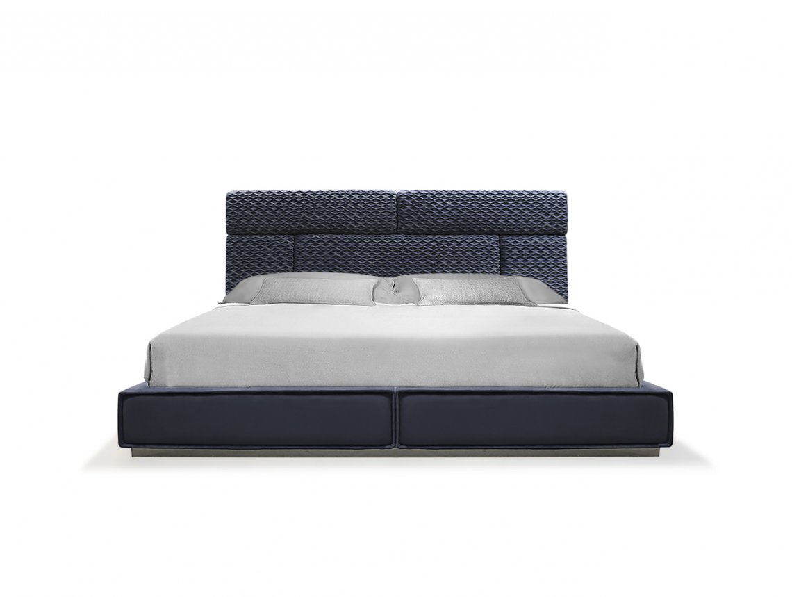 Bed Hug is characterized by a headboard decorated with soft three-dimensional quiltings with rhomboid pattern that underline great sartorial skills. It is available both in leather and fabric upholstery.
