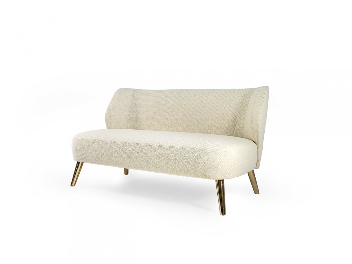 The enveloping and comfortable sofa Marilou can be upholstered only with selected textured fabrics. The backside is characterized by a quilting embroidered with hexagonal design. The bronze metal feet are realized with the ancient sand casting technique that conveys an artistic touch to the sofa.