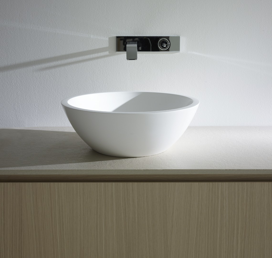 Aufsatzwaschbecken aus Monolith ohne überlauf, für Ventil aus Monolith.