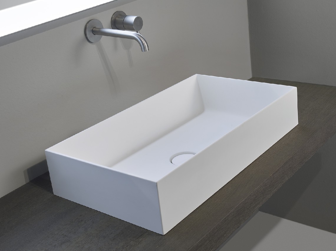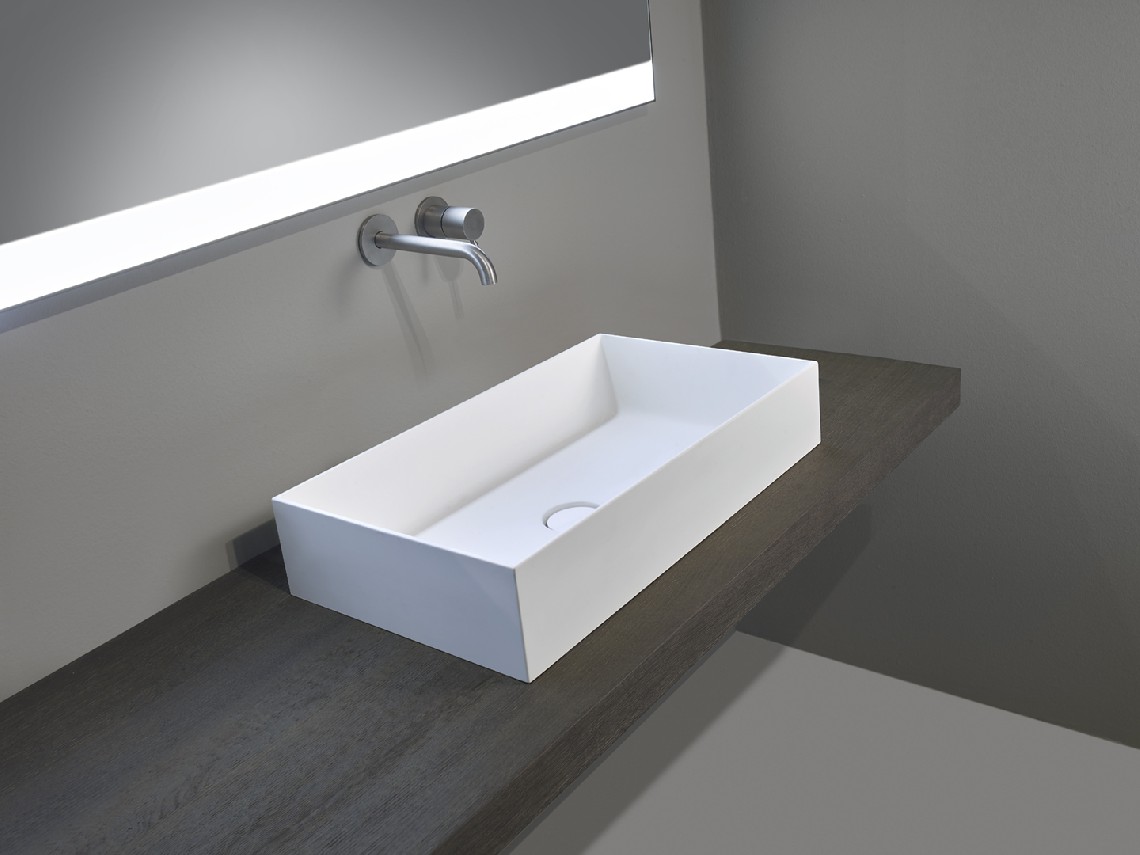 Top or semi built-in top washbasin in Monolith, with no overflow, for Monolith drain plug.