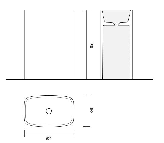 Floor washbasin in Monolith with not overflow hole and Monolith