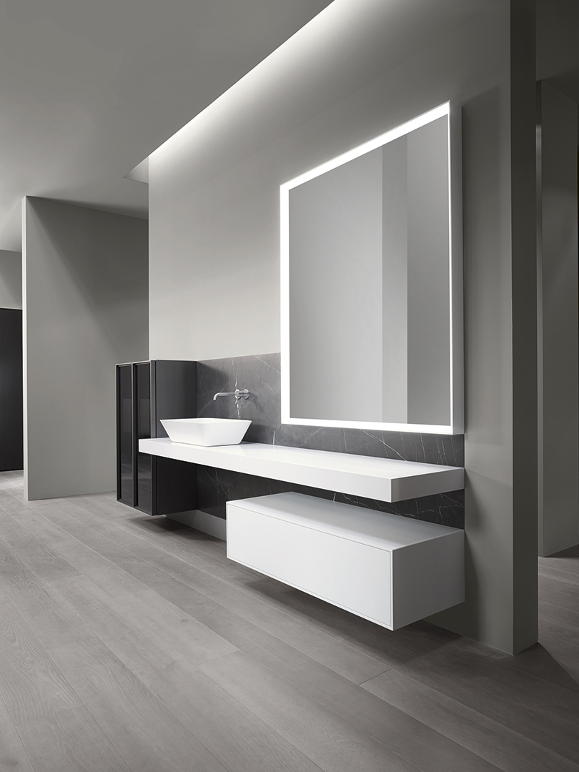 Top washbasins in Monolith, with no overflow, for Monolith drain plug.