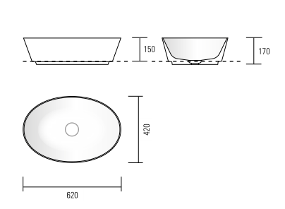 Top washbasins in Monolith, with no overflow, for Monolith drain plug.