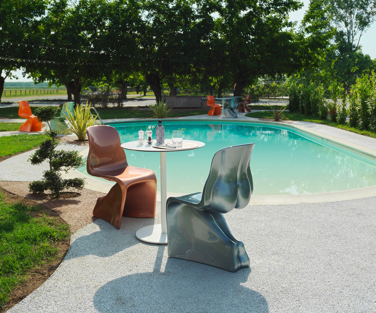 “Him & Her are born directly from the ideas behind the Panton Chair. An evolution of the hermaphroditic original, declined into the harmony of the two sexes. They assume sculpted forms like naked models of seduction but they are not ashamed.” Cit. Fabio Novembre