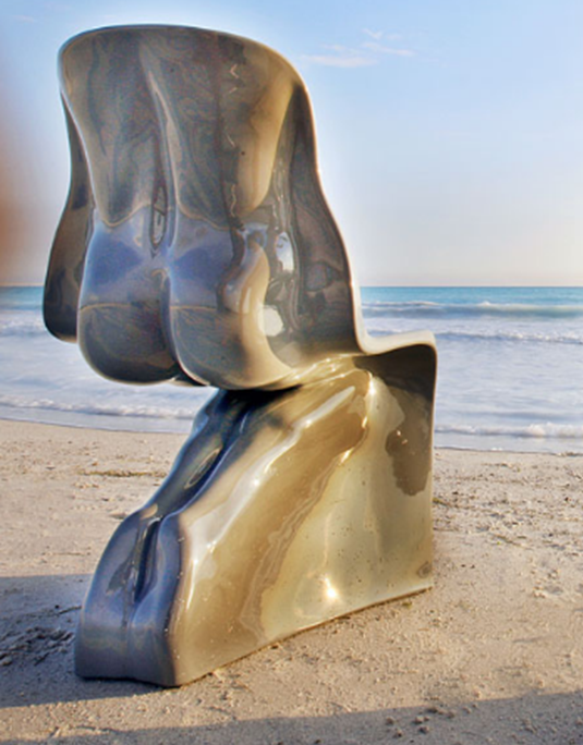 Chairs in glossy painted polyethylene. Their shape derives from the three-dimensional scanning of two plaster sculptures. Next to Him, could not miss Her