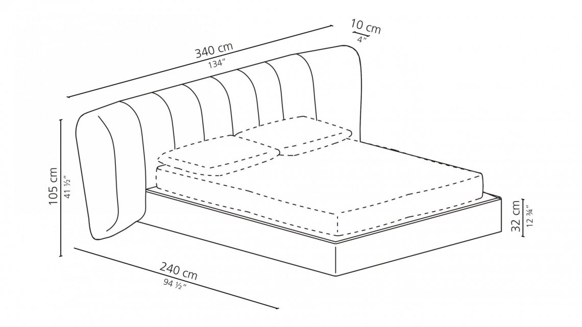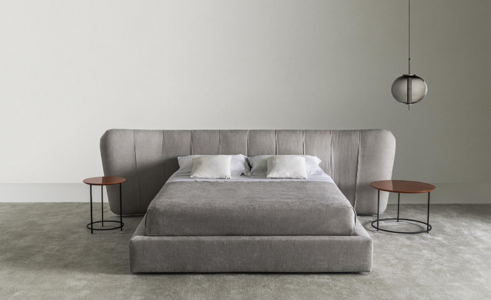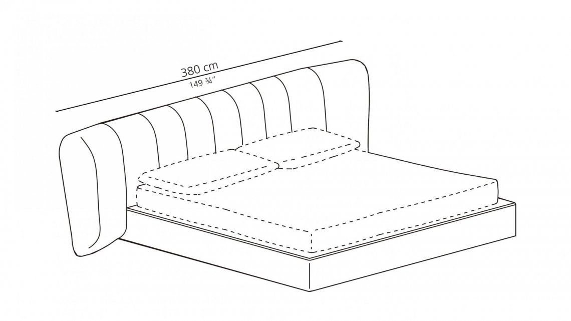 Upholstered bed, characterized by an important and enveloping headboard with a special pleated tailoring. The ROYALE family also includes chairs, sofas and armchairs.