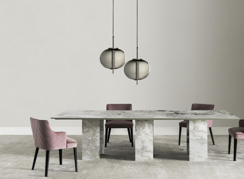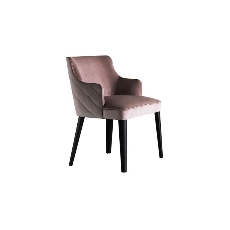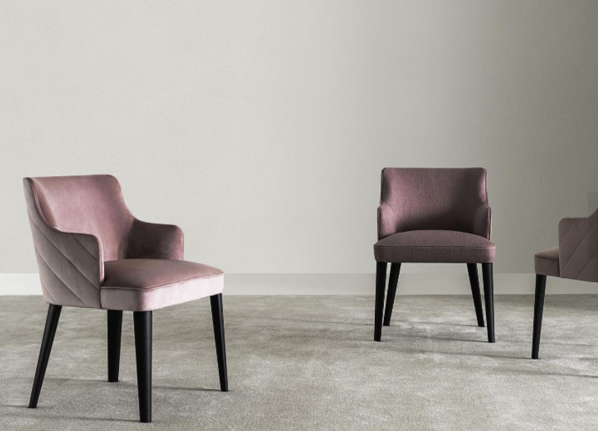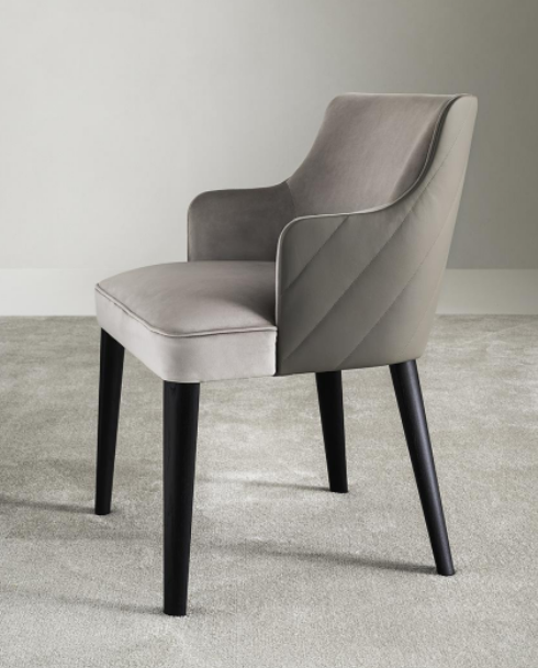 Upholstered chair with a contemporary design, characterized by the enveloping backrest in the quilted version that gives it modernity, like the thinner and oval "slim" legs.
