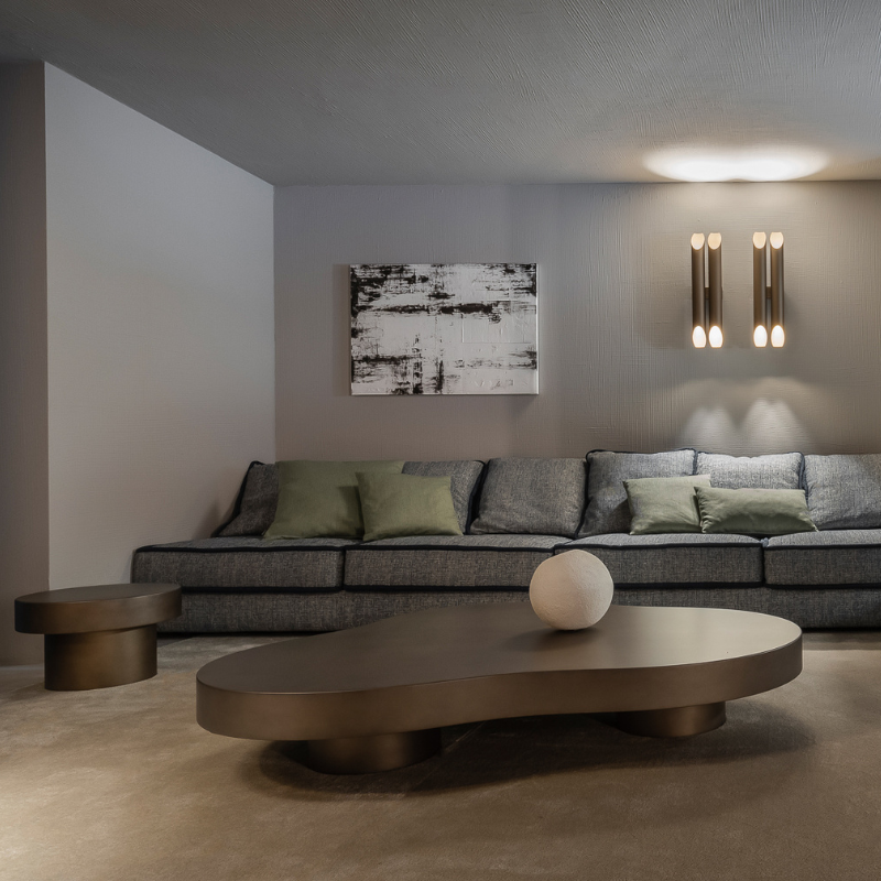 Low table with a strong personality, characterized by its irregular shape, embellished by the manual finish.