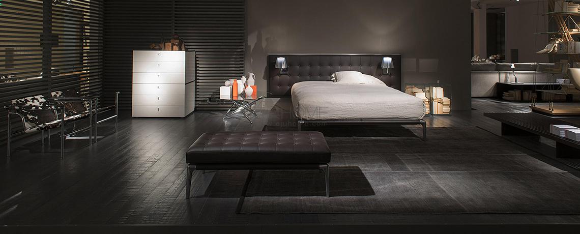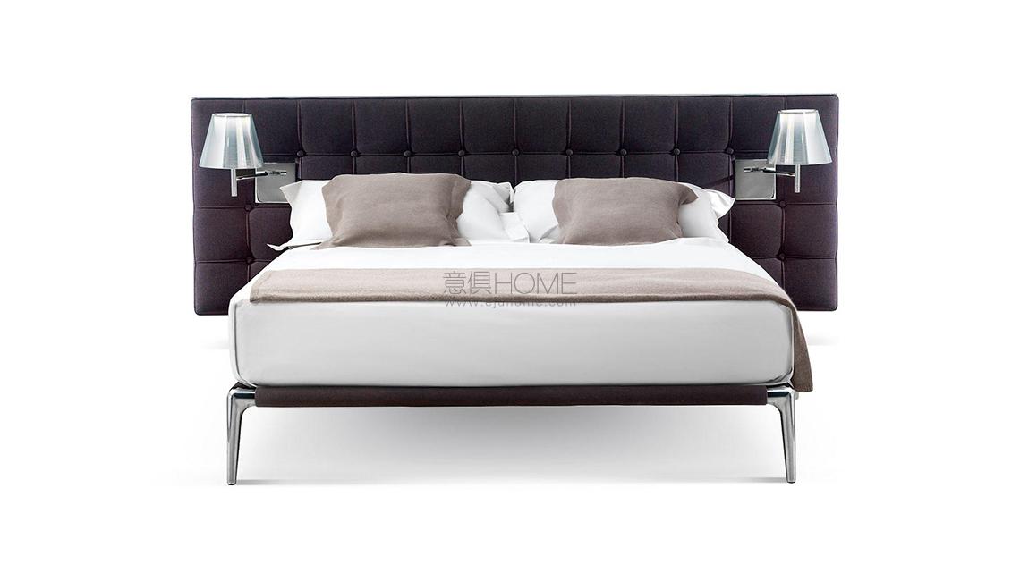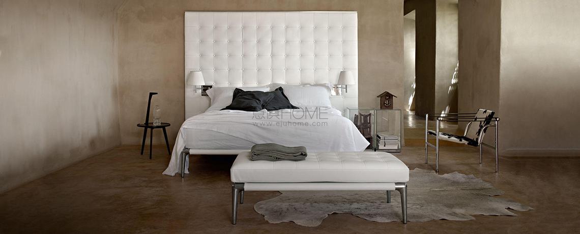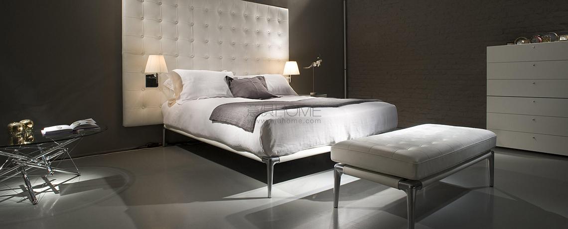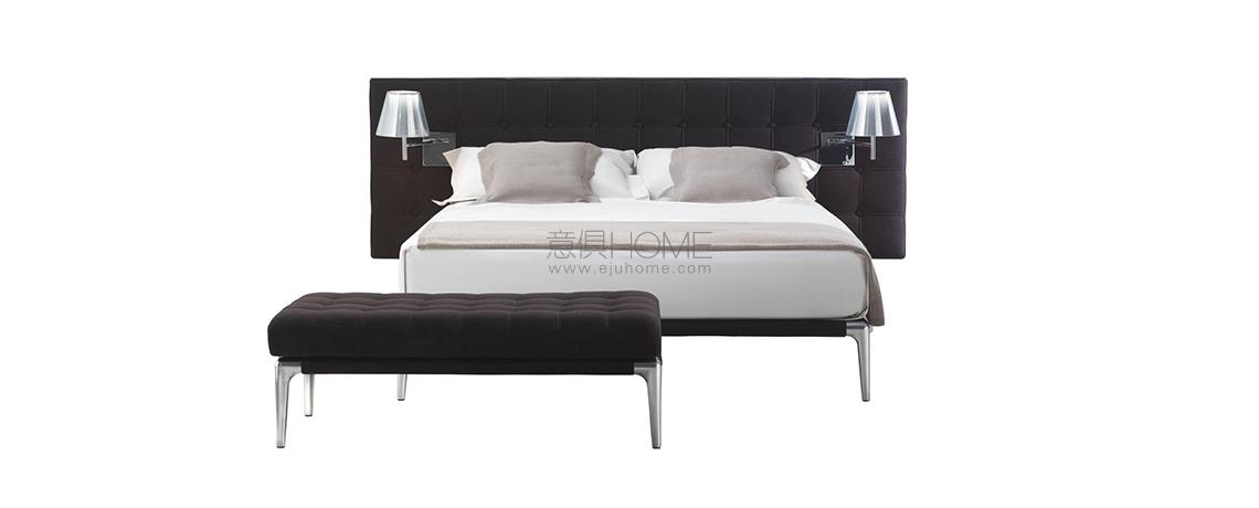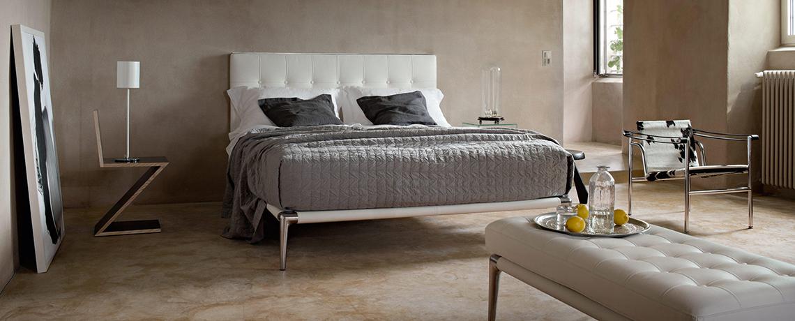 Il letto Volage associa ironia e leggerezza a un disegno deciso, per un risultato dal de-sign originale e rigoroso. Il giroletto è in alluminio, rivestito in tessuto o pelle; la testiera – imbottita in poliuretano espanso, privo di CFC – è caratterizzata da una preziosa lavora-zione capitonné in pelle o tessuto, sviluppata e brevettata dall’azienda a livello interna-zionale, e abbinata a piedi sottili in pressofusione di alluminio lucido. La libertà di visione e interpretazione è agevolata dall’ampiezza dell’abaco e dalla testiera in varie dimen-sioni: a filo del bordo letto, può essere bassa (della stessa dimensione del letto o più grande, anche con la predisposizione per lampade da lettura) o alta (in dimensioni am-pie, anche con predisposizione per lampade da lettura). Completano la collezione un comodino e una panca.
