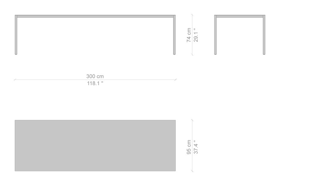Piero Lissoni disegna questo tavolo applicando una duplice lettura basata sulla leggerezza visiva e sulla solidità strutturale dell’oggetto. Il rigore formale è accentuato dallo spessore ridotto del piano rettangolare di soli 10 mm, realizzato in d iverse finiture tra cui la versione in rovere fumigato che, grazie a una lavorazione innovativa, valorizza l’essenza del legno