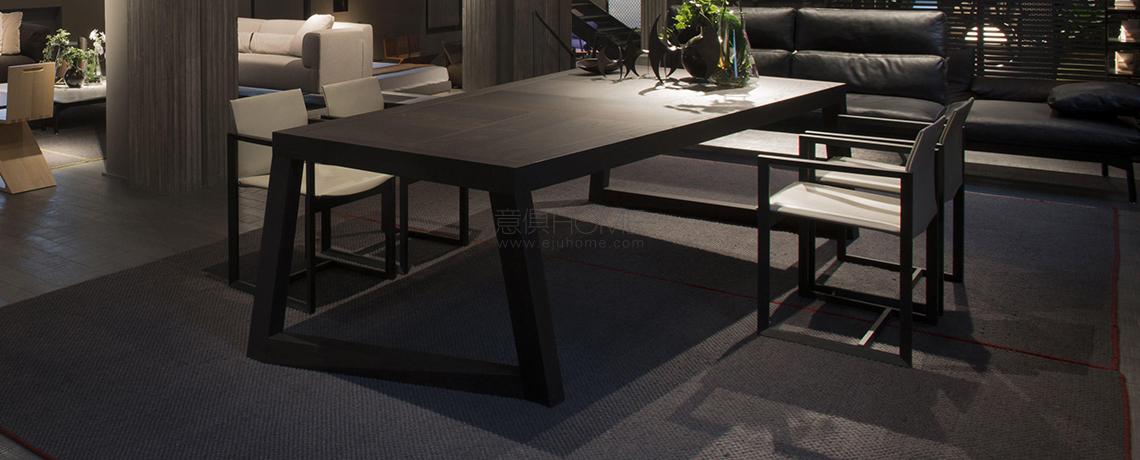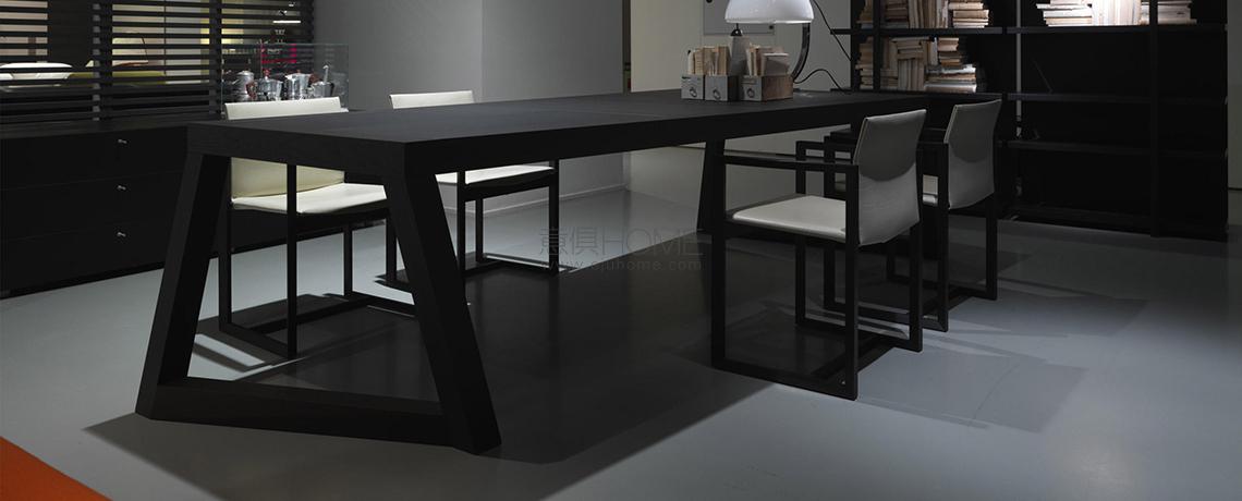Piero Lissoni definisce questo tavolo-scultura come “un arredo dalla personalità diversa e spiazzante”, racchiusa in una combinazione asimmetrica di tanti pezzi diversi. Il tratto lineare dei sostegni e del piano si piega dinamicamente nei giunti per creare direzioni opposte di rotazione. Le sapienti deformazioni sono visibili solo attraverso una visione a 360° che consente di percepire appieno il tratto enigmatico del mobile. La raffinatezza del massiccio piano rettangolare rievoca la matrice asimmetrica nella composizione delle lastre di rivestimento, rifinite con un particolare intarsio materico che accentua la lavorazione fumigata del legno. Gli accorgimenti costruttivi ed estetici traducono l’eccellenza artigianale di Cassina mettendo in luce lo studio meticoloso compiuto sui giunti e sugli snodi tra gli elementi di forma irregolare.