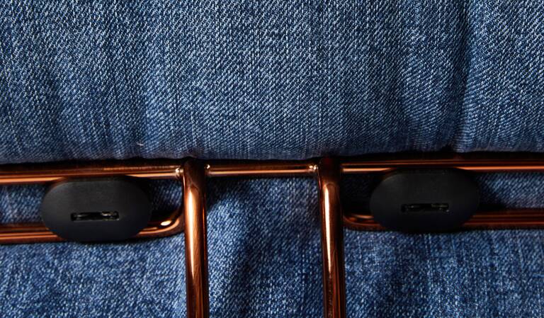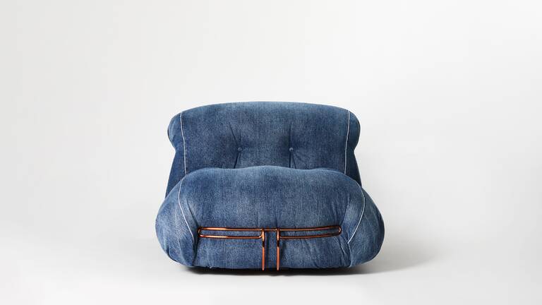 Soriana by Afra & Tobia Scarpa poltrona in denim crafted by Roy Roger’s采用最高品質的日本自鎖邊牛仔布制成,這是一種特殊的長纖維美國棉布,專門用上世紀60年代的傳統有梭織機織造,其特點是在白邊上伴有一條被稱為“自鎖邊”的紅線,可防止磨損。