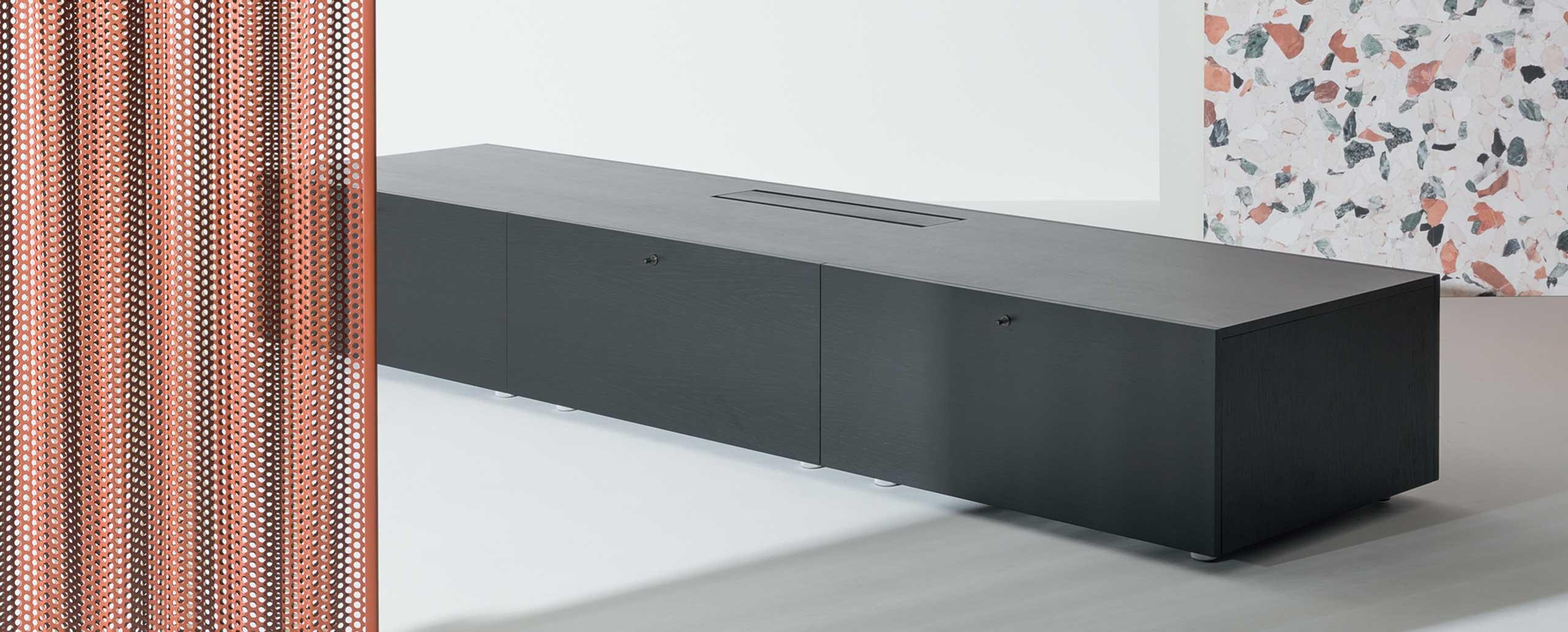 Una gamma di contenitori dal design essenziale e intramontabile, progettati per adattarsi facilmente ai diversi ambienti e stili di arredo. La collezione Flat è stata oggetto di una significativa rivisitazione volta al rinnovamento stilistico, al perfezionamento tecnico e all’ampliamento delle configurazioni disponibili, studiate per il living e per la zona notte. Gli elementi, resi ancora più versatili e preziosi, sono modulati nell’ottica dell’organizzazione e della funzionalità, sia essa di contenimento o supporto, mentre le nuove varianti in legno, marmo, laccato e metallo esaltano la contemporaneità delle forme. Il sistema si apre a soluzioni e composizioni personalizzate destinate a un pubblico poliedrico e ad esigenze d’uso molteplici.