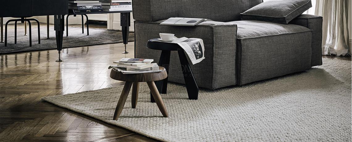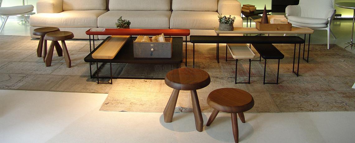 Entrambi ispirati dalla montagna, l’uno prende il nome dai pastori delle Alpi che utilizzavano questa tipologia di sgabello per mungere, l’altro dalla località francese amata dalla Perriand. Questi complementi si distinguono per l’onestà delle forme semplici e per la concretezza espressa dal materiale e dalla funzione. Il sedile tornito è abbinato alle gambe stilizzate sia per il Tabouret Berger, variante bassa con tre gambe in massello tornite a mano, sia per la versione alta Tabouret Méribel con tre gambe angolari a taglio. Prodotti da Cassina grazie a un’accurata lavorazione artigianale che onora l’autenticità del progetto, questi piccoli capolavori possono essere utilizzati singolarmente o in composizioni di grande originalità. L’utilizzo del massello comunica una piacevole sensazione di morbidezza, con la continuità della venatura tra il piano e il bordo, mentre la profondità delle superfici disegna su ogni pezzo infinite variazioni naturali.
