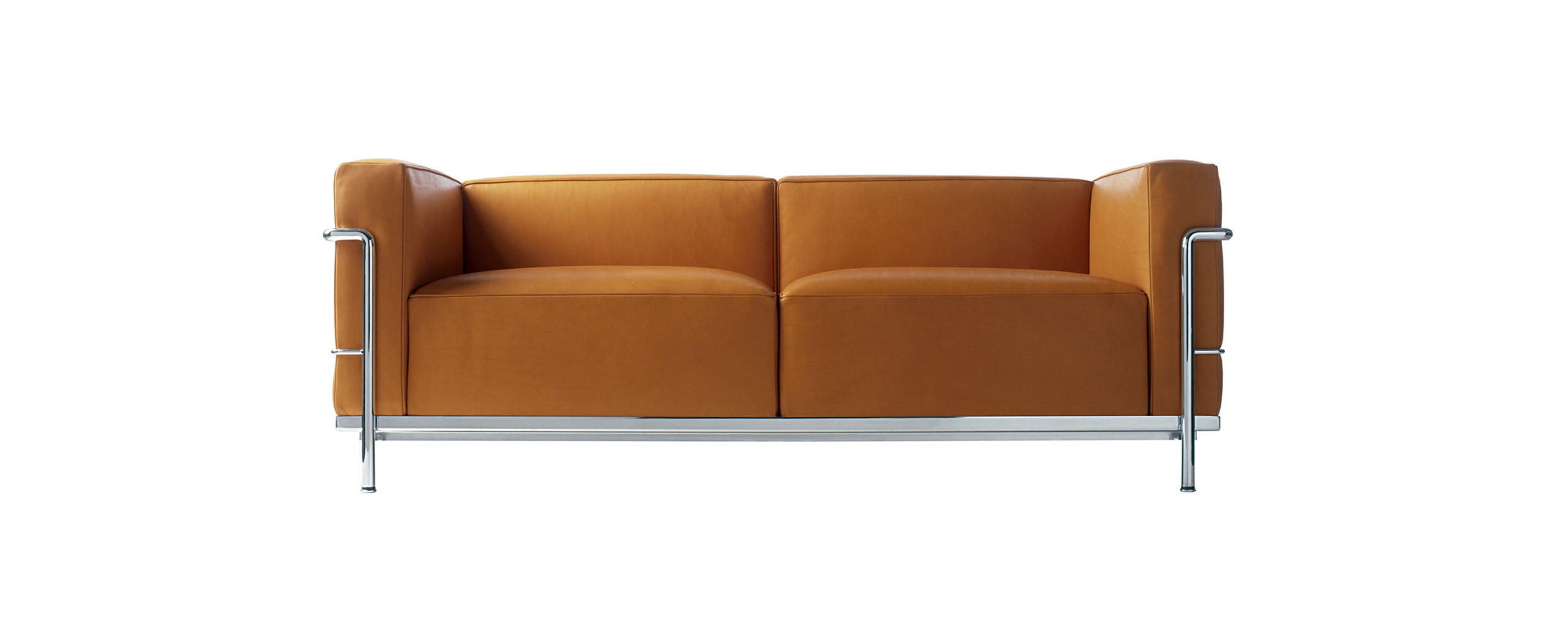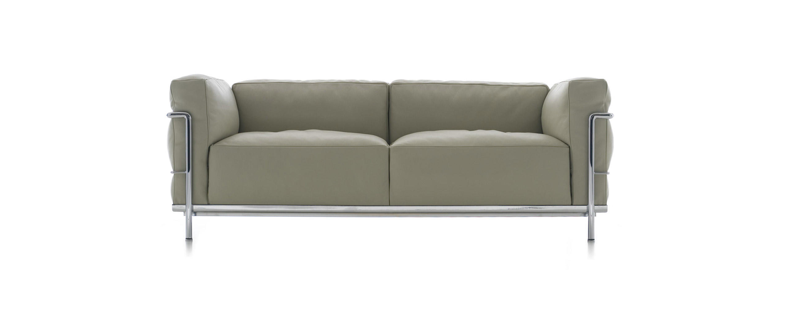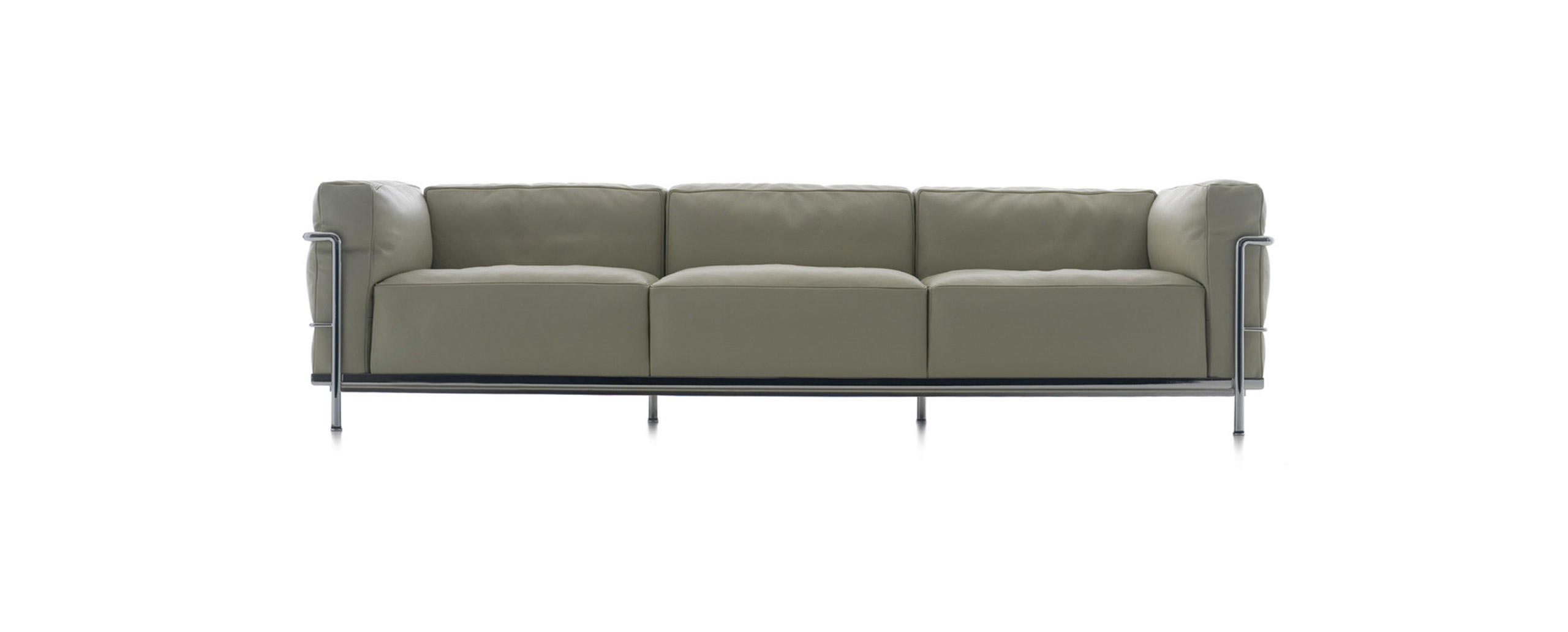 Fauteuil Grand Confort, grand modèle Quattro cuscini, privi di legami, sono contenuti in una gabbia di tubi di acciaio verniciato o cromato, che costituisce il supporto primario dell’oggetto. Poltrona con due braccioli e poltrone con bracciolo sinistro o destro, divani a due o a tre posti con struttura in acciaio cromato trivalente (CR3) oppure verniciato nella palette di colori originali di Le Corbusier. Il rivestimento dei cuscini è in tessuto oppure in pelle.