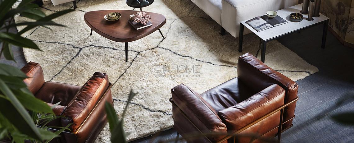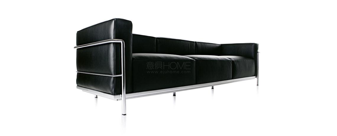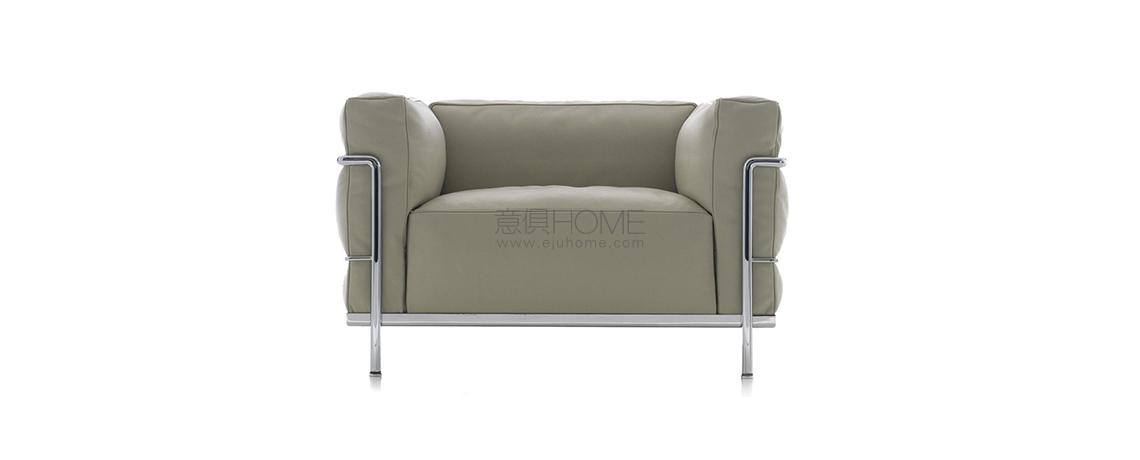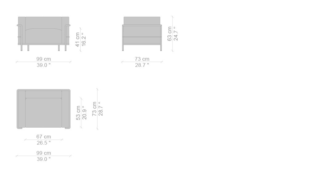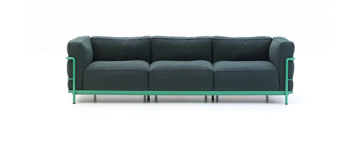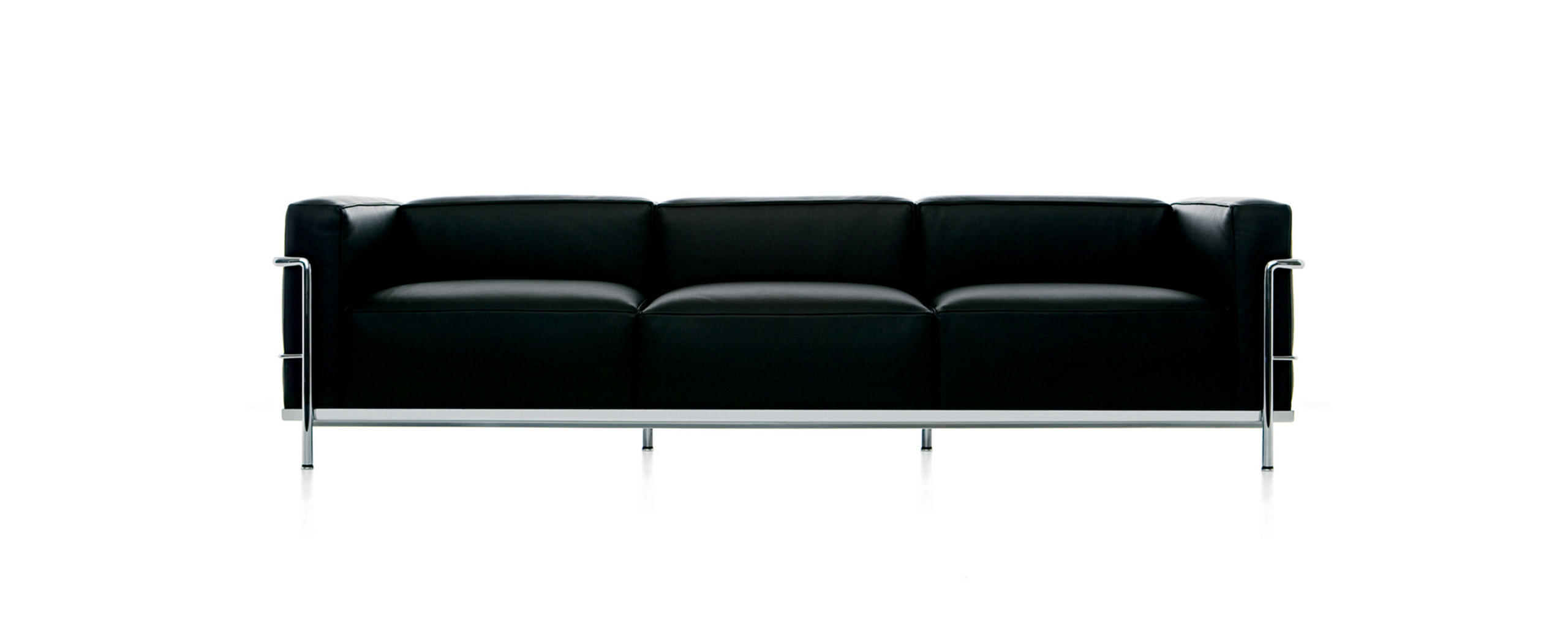 Fauteuil Grand Confort, grand modèle Quattro cuscini, privi di legami, sono contenuti in una gabbia di tubi di acciaio verniciato o cromato, che costituisce il supporto primario dell’oggetto. Poltrona con due braccioli e poltrone con bracciolo sinistro o destro, divani a due o a tre posti con struttura in acciaio cromato trivalente (CR3) oppure verniciato nella palette di colori originali di Le Corbusier. Il rivestimento dei cuscini è in tessuto oppure in pelle.