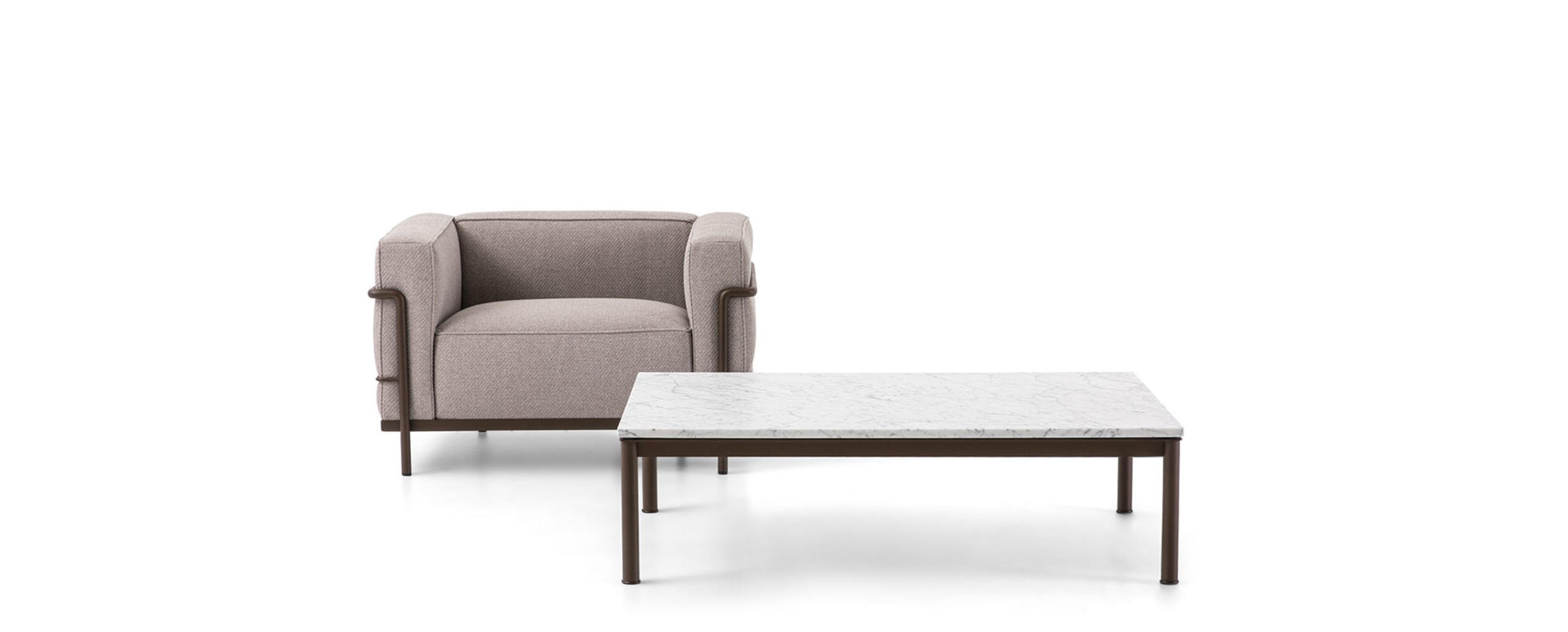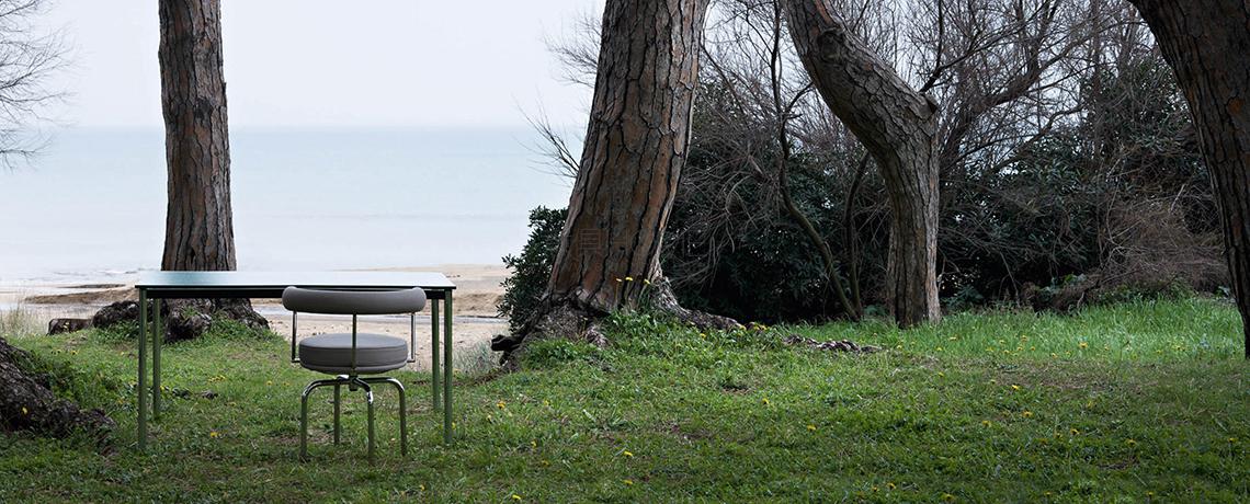 Questo sgabello tavolino fu realizzato per le stanze dei bambini dell’ Unité d’habitation di Nantes Rezé. Progettato secondo la poetica dell’objet trouvé, cara al maestro nell’ultima parte della sua esistenza, l’oggetto presenta oggi nuovi dettagli rispetto alle varianti già incluse in collezione. Sviluppato dopo il primo progetto per il Tabouret Cabanon a due dimensioni del 1952, il modello anticipa nella composizione a tre dimensioni il Tabouret du Brésil differenziandosi per la maggior semplicità dei giunti. Le altre due versioni sono caratterizzate da incastri tra i piani a coda di rondine, mentre questo pezzo prevede un’unione dei pannelli ortogonali semplificata e minimale. Le diverse facce, in rovere laccato a poro aperto, sono caratterizzate da due colori della palette di Le Corbusier: azzurro oltremare e marrone. L’impugnatura è semplificata con un incavo rettangolare e non arrotondato.