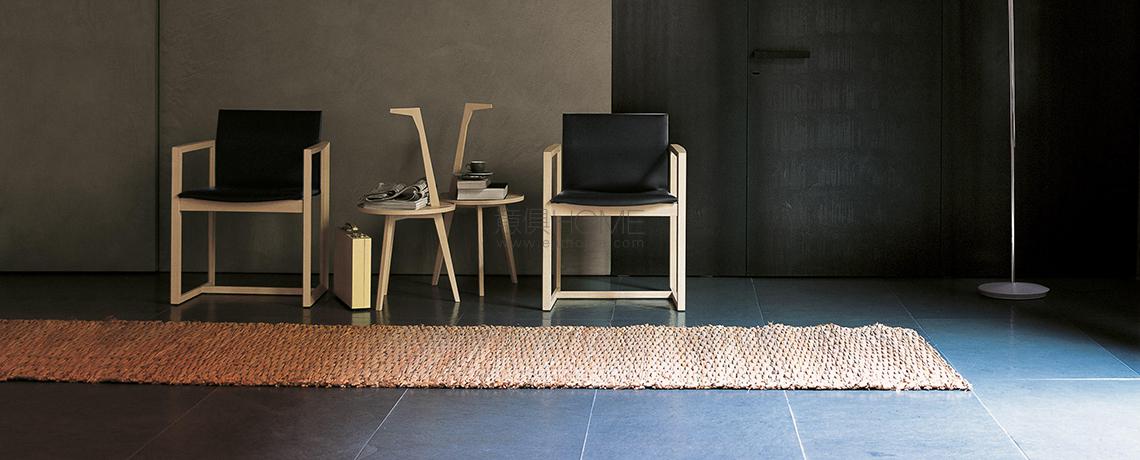 Una sedia dall’anima duplice, proposta da Cassina nelle versioni in legno o metallo. La stessa forma cambia personalità in base al materiale utilizzato, mantenendo comunque inalterati il sedile e lo schienale in cuoio. La geometria semplice della struttura diventa più calda e naturale nel modello in noce o frassino, ideale per gli ambienti domestici. Le linee si fanno invece più sottili e d’impatto nella variante in fusione di alluminio dedicata agli spazi office e contract. L’innovativo assemblaggio delle parti in pelle rivela un gioco sapiente di tagli e piegature che evidenziano la maestria artigianale dell’azienda: il rivestimento è concepito come una “busta” priva di cuciture a vista da inserire sopra la struttura. Estrema attenzione è rivolta anche all’aspetto funzionale, agevolato da una scocca in materiale plastico termoformato accoppiato con un sottile strato di poliuretano, mentre la linea stondata del sedile aumenta l’effetto comfort.