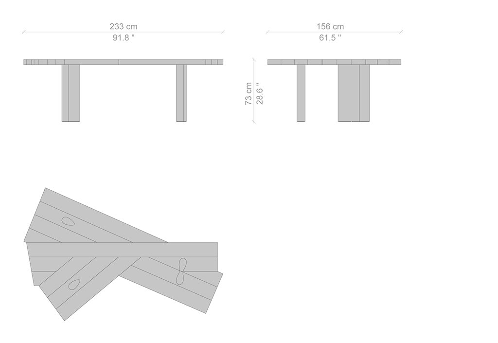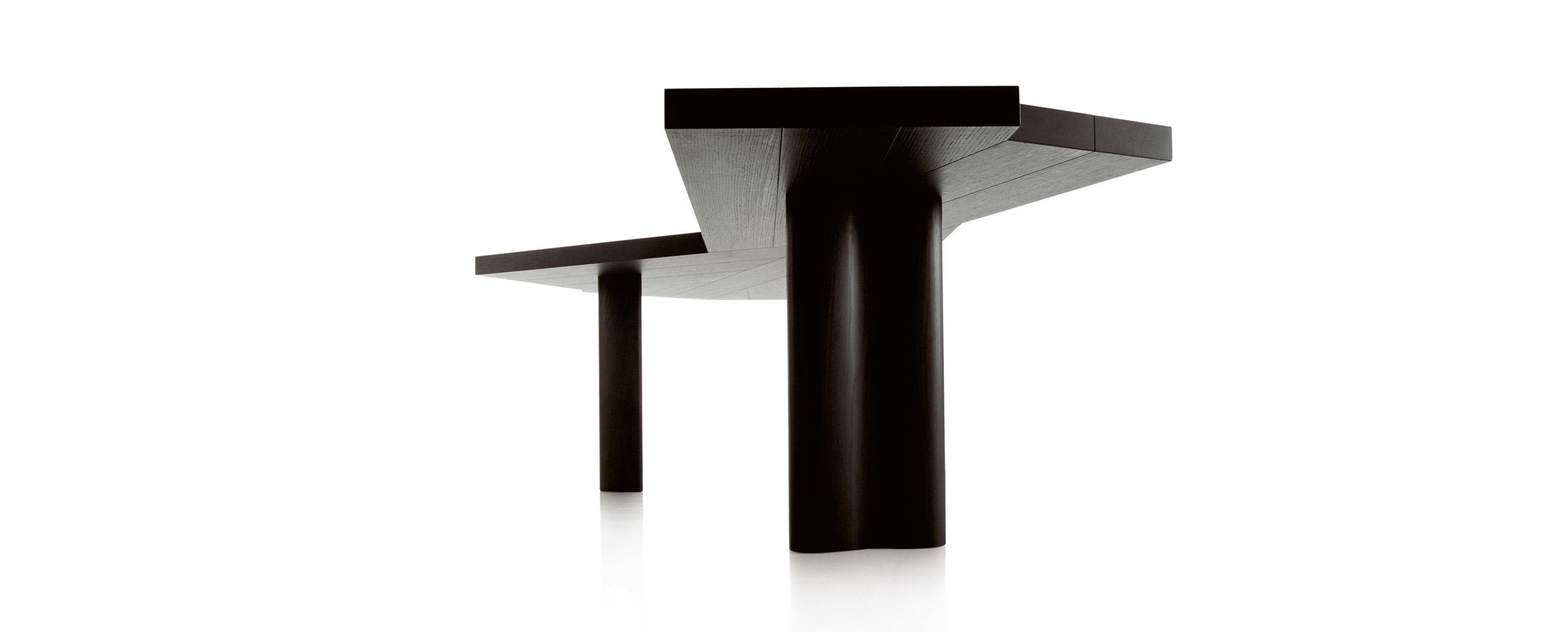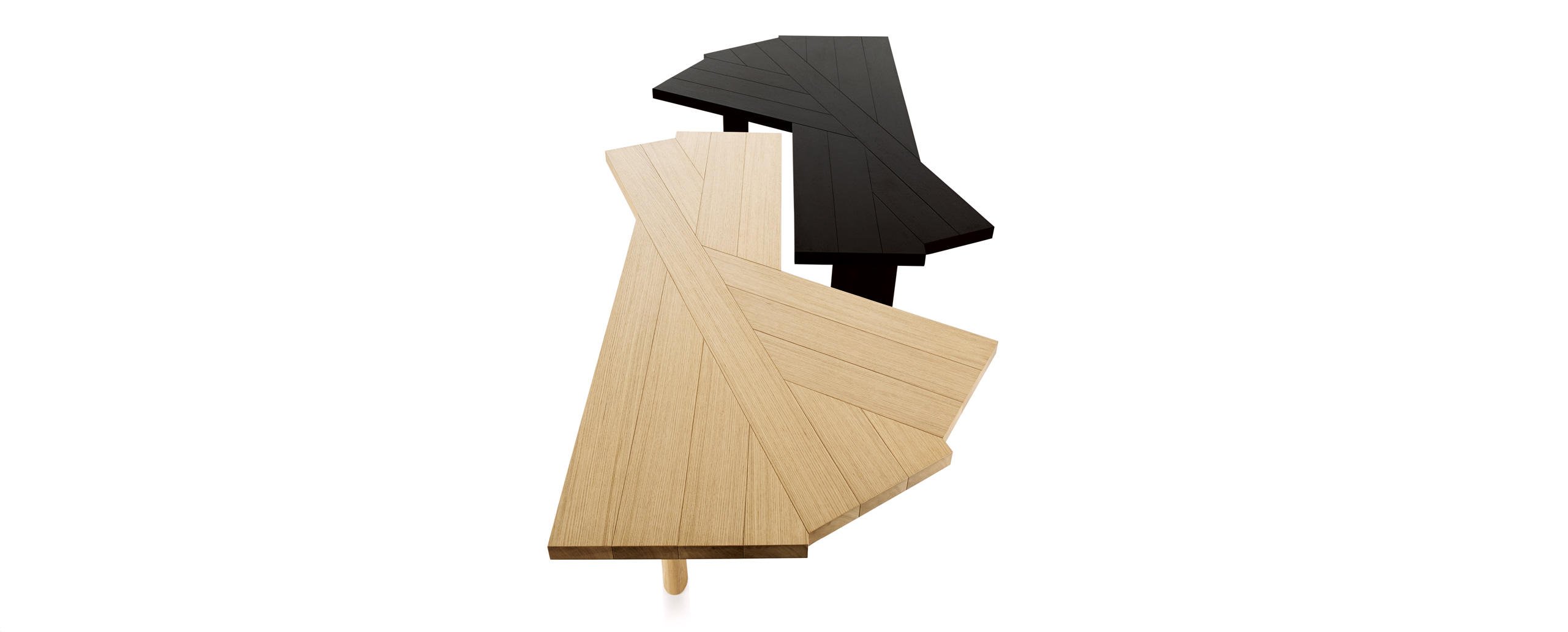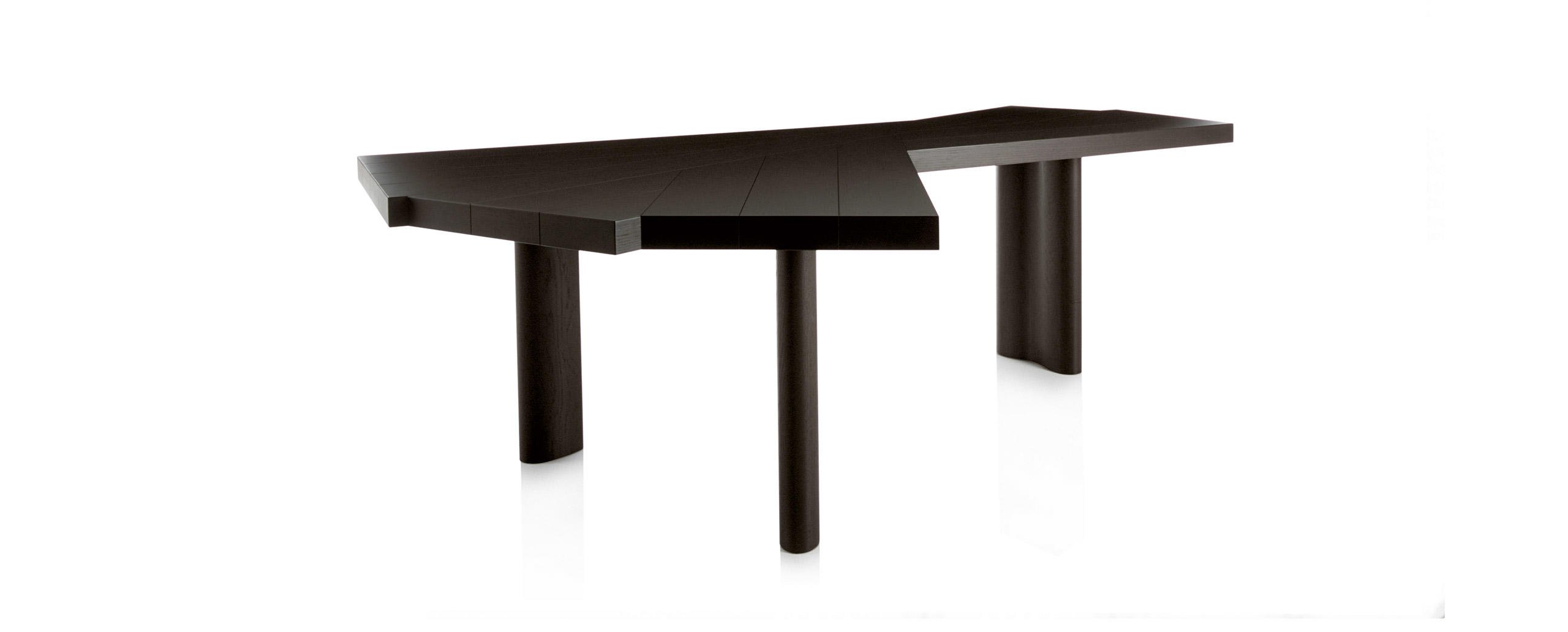 Un mobile dal carattere multifunzionale e rivoluzionario, che per forma e uso si differenzia in modo unico da tutti gli altri tavoli, sintetizzando compiutamente l’art de vivre di Charlotte Perriand. La struttura nasce dal montaggio semplice ma perfetto di quattordici assi affiancate e sapientemente assemblate tra loro nella falegnameria di Cassina. I singoli elementi si uniscono in un complesso strutturale di grande eleganza e versatilità, da interpretare in modo dinamico e innovativo in ogni scenario. Impiegato come tavolo da pranzo, Ventaglio può ospitare comodamente da 5 a 9 persone secondo l’ingombro dello spazio centrale. Se utilizzato come scrivania, la sua forma irregolare può accogliere un numero variabile di persone in base all’area necessaria per la disposizione dei computer e degli strumenti di lavoro.