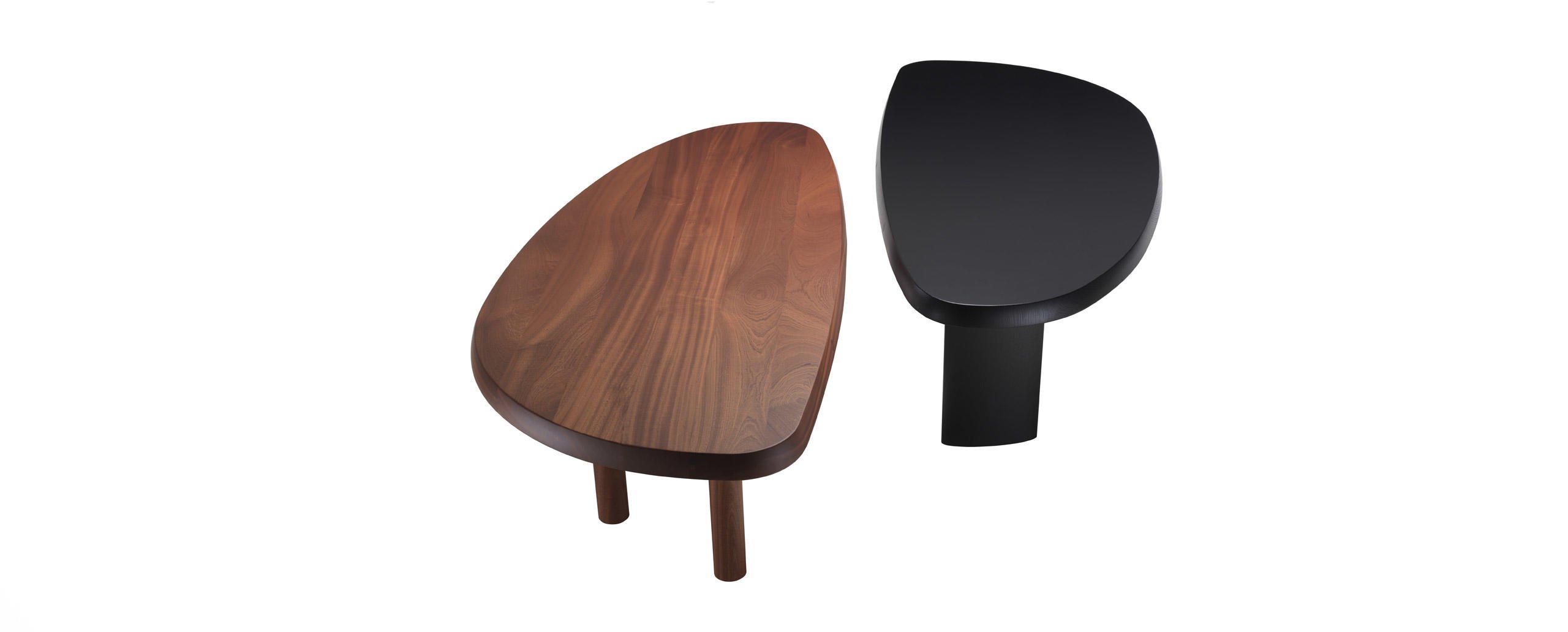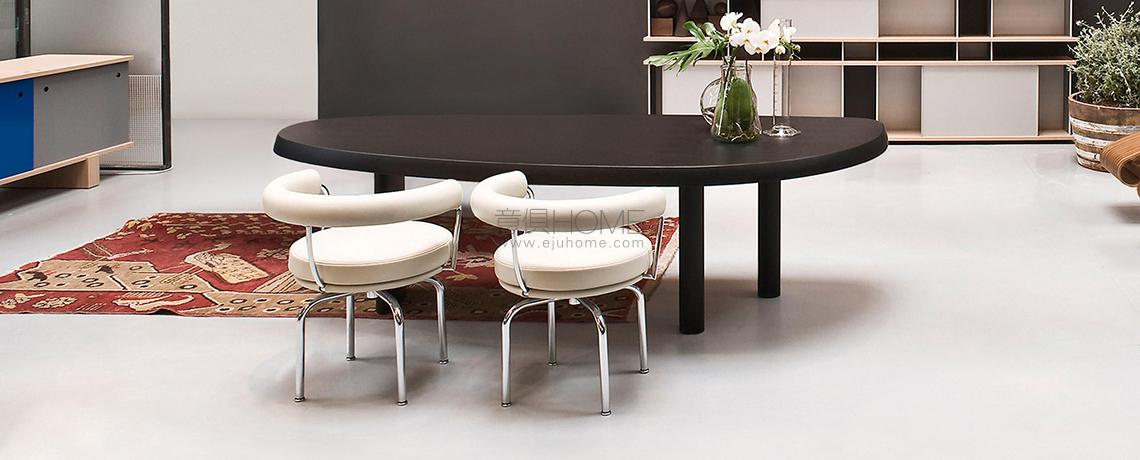 La Perriand inizia a disegnare la serie di tavoli en forme libre nel 1928, per il suo Atelier di Montparnasse, mettendoli in produzione con la Galerie Steph Simon alla fine degli anni ’50. Le forme prive di spigoli, arrotondate e asimmetriche, si adattano anche agli spazi ridotti consentendo di ospitare fino a 8 persone. La struttura presenta tre sostegni, di cui uno più grande e altri due più piccoli di forma cilindrica. Nel 2011 Cassina riedita il modello riducendo l’ingombro delle gambe per offrire una nuova dimensione che invita alla convivialità. Il tavolo in massello è disponibile anche in una versione interamente laccata lucida o opaca, nella palette di colori del progetto Moodboard Cassina. Il tavolo è composto da doghe con giunzioni laterali a vista che testimoniano la grande maestria dell’azienda nella lavorazione del legno, le cui eventuali mutazioni e irregolarità sono caratteristiche intrinseche che contribuiscono a evidenziare la naturale bellezza dell’essenza.