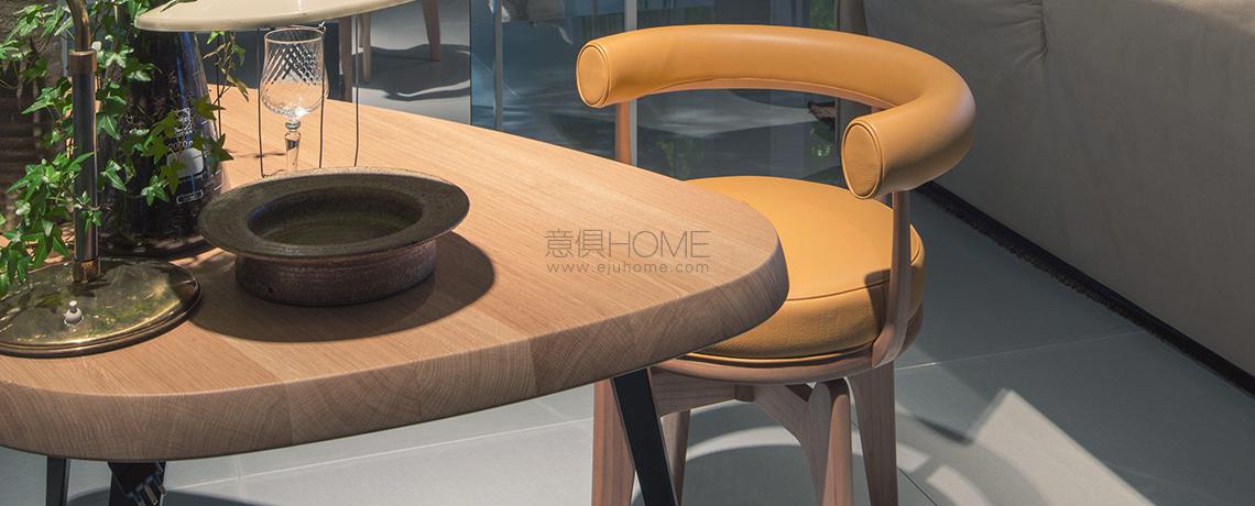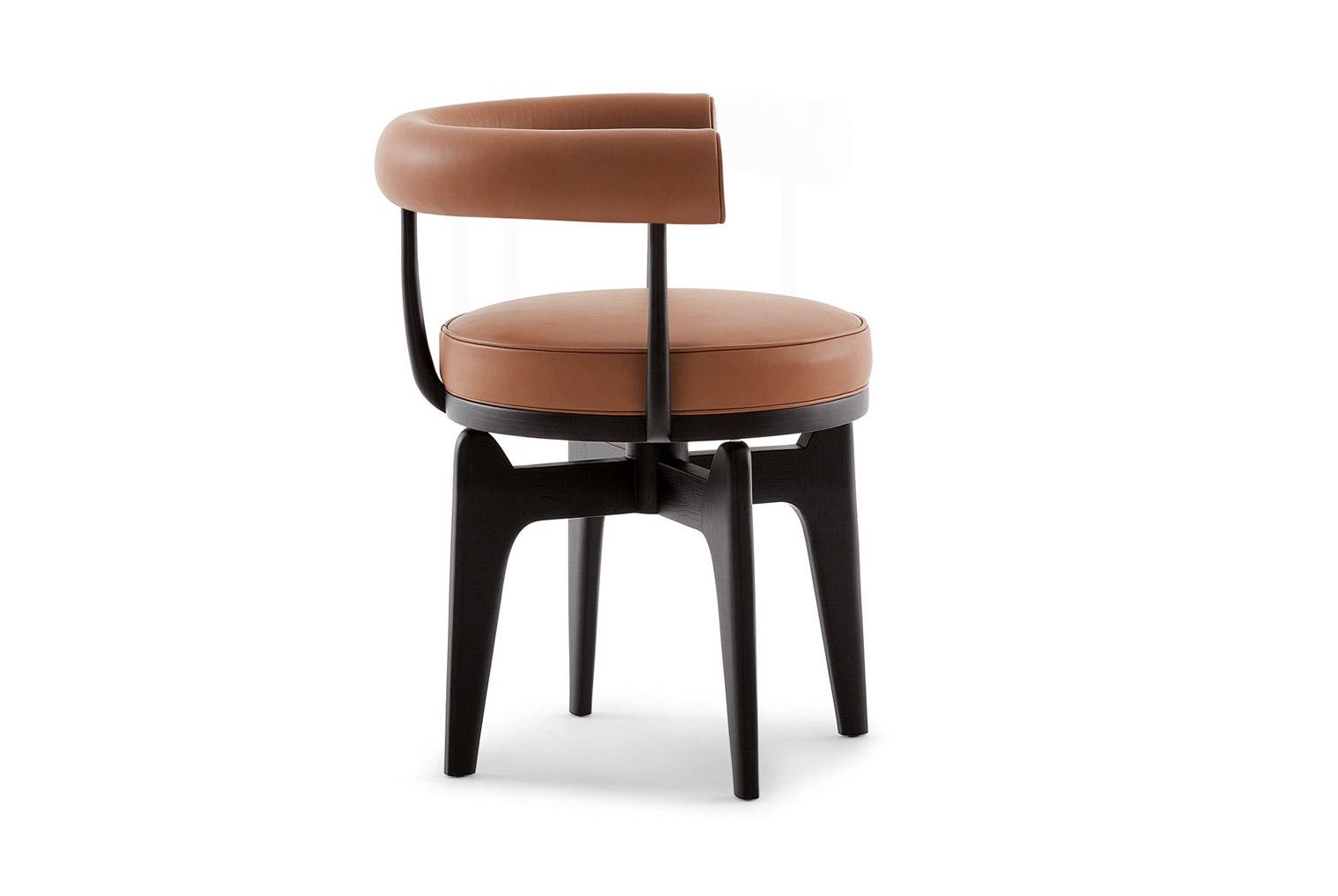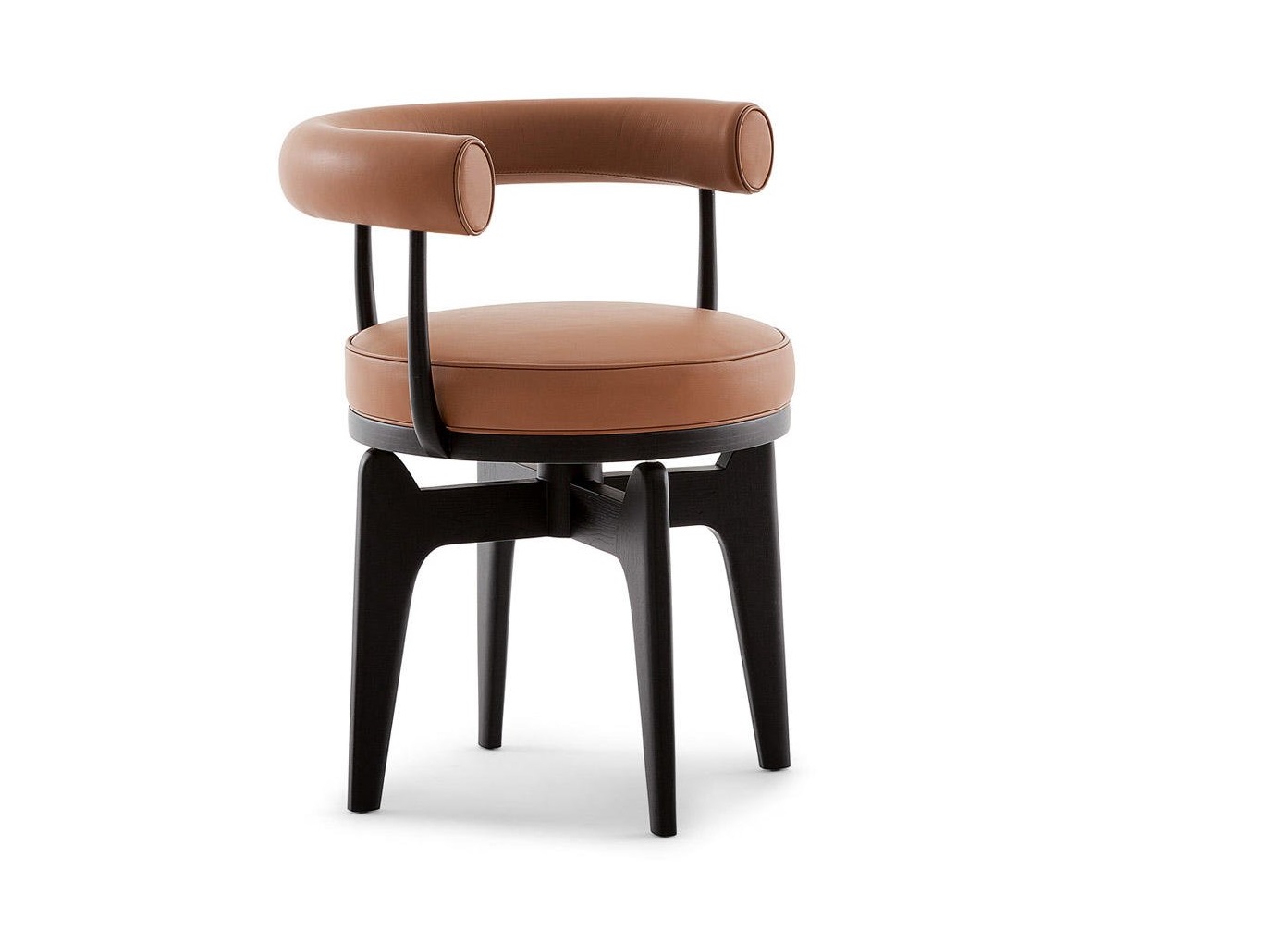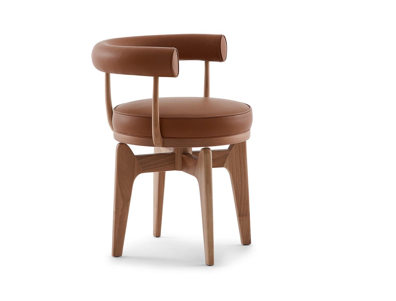 Questa poltrona girevole rappresenta un adattamento della poltroncina in tubo metallico LC7, disegnata da Charlotte Perriand nel 1927 e successivamente inclusa nel gruppo di arredi co-firmati con Le Corbusier e Pierre Jeanneret per il Salon d’Automne del 1929. Il modello fu disegnato in Vietnam nel 1943 impiegando i materiali e le tecniche artigianali reperibili durante il periodo di guerra. Dapprima strutturato con tre gambe, e in seguito con quattro, il modello riflette l’approccio flessibile e ingegnoso dell’autrice, che spesso adeguava i progetti ai materiali disponibili e ai luoghi di produzione. Cassina ha rieditato Indochine nel pieno rispetto del disegno originale interpretandolo con una pregiata costruzione in massello che evidenzia l’eccellenza dell’azienda nella lavorazione del legno.