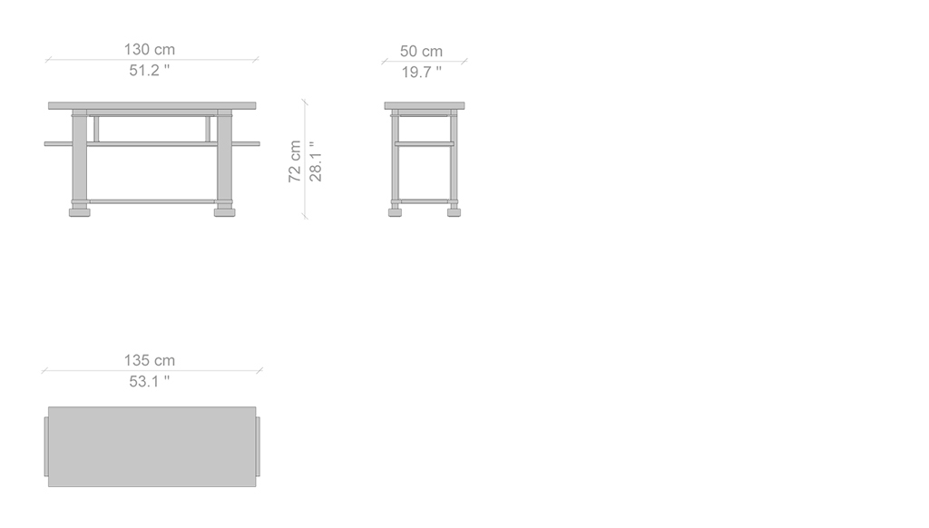 Questo tavolo fu inizialmente concepito come credenza per la sala da pranzo della Boynton Hall di New York, disegnata da Frank Lloyd Wright nel 1908. L’architetto immaginò una consolle dalle forti linee orizzontali e verticali che corrispondevano pienamente alle caratteristiche peculiari dei suoi progetti residenziali. Il pezzo proposto in noce canaletto e nelle diverse finiture di ciliegio è oggi prodotto dai falegnami di Meda quale emblema del savoir-faire di Cassina nell’arte dell’ebanisteria. Un’icona senza tempo, che esprime pienamente  l’amore dell’autore per l’armonia poetica.  Grazie alle rifiniture di ogni parte, la consolle può essere collocata a parete o nella zona centrale della stanza.