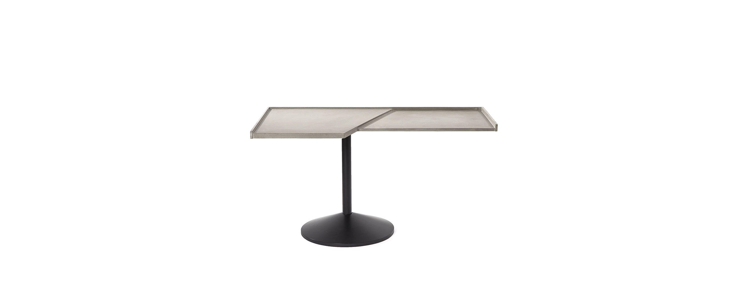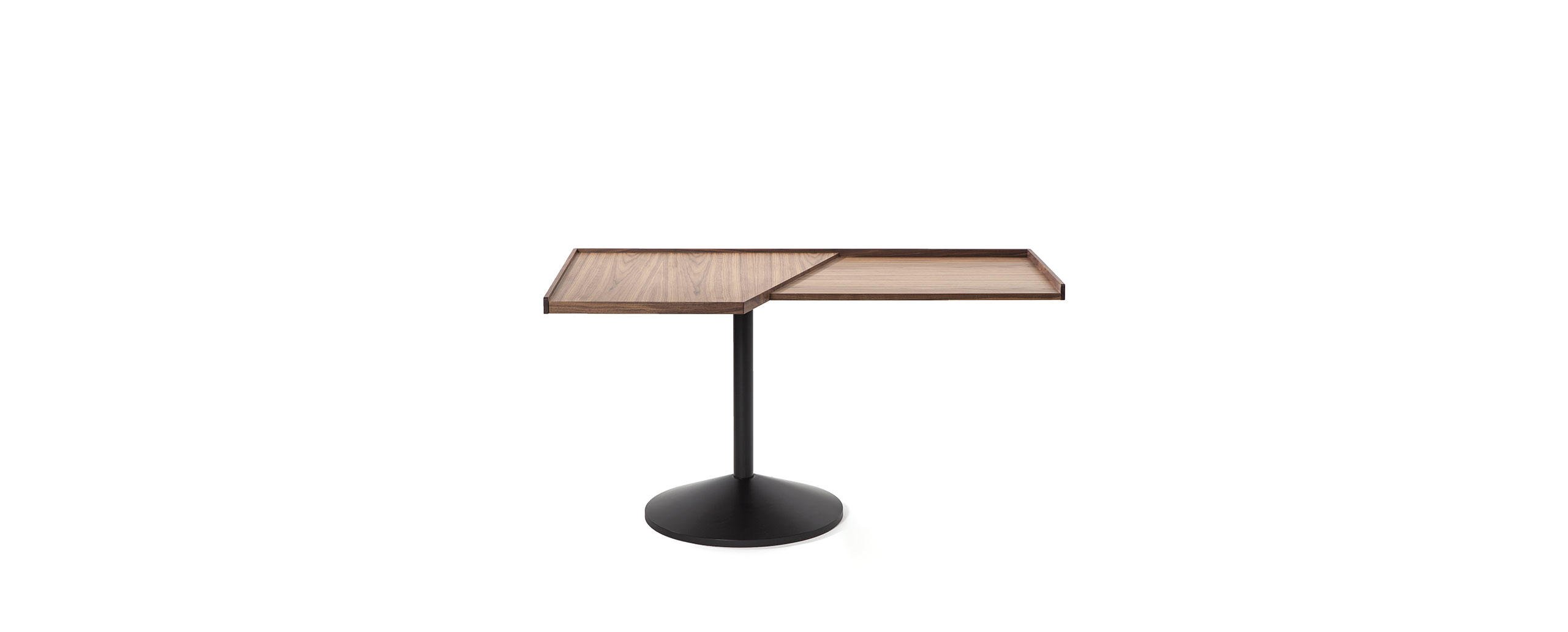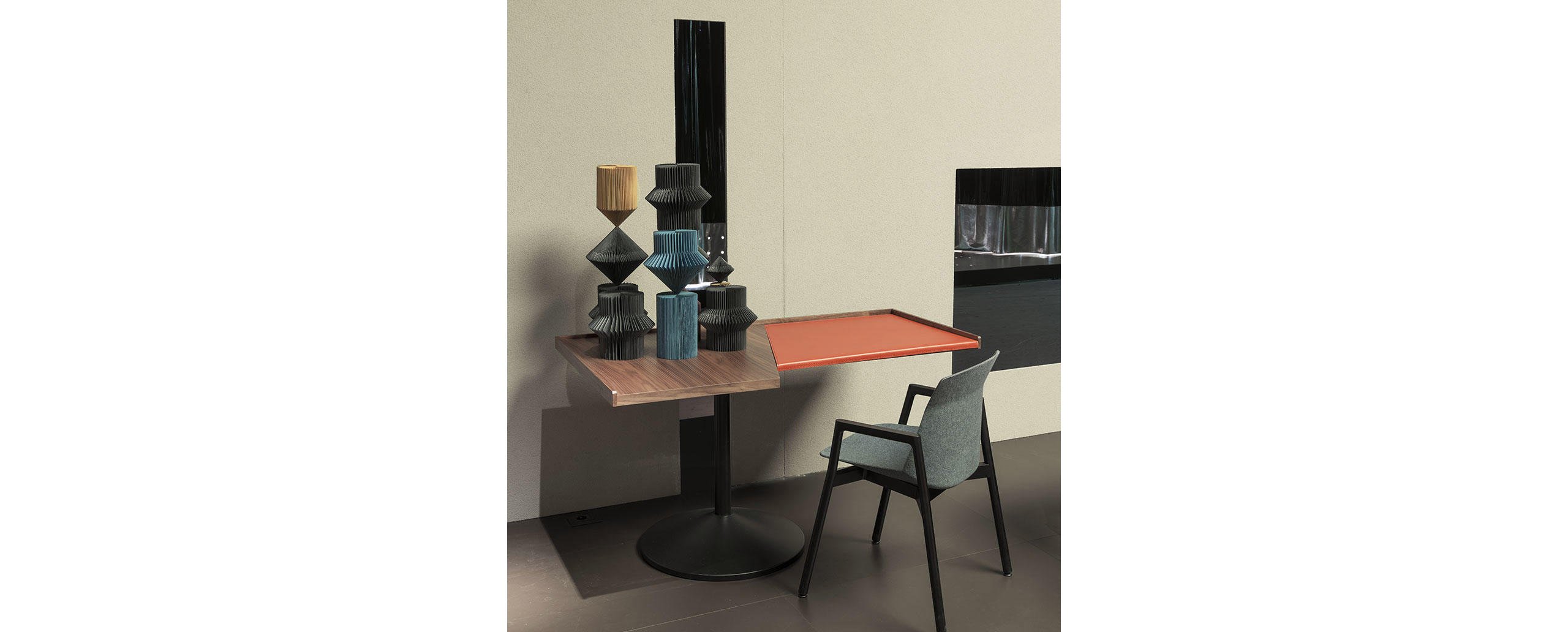 Il tavolo-scrittoio disegnato da Franco Albini è costituito da due piani accostati, uno principale e uno laterale, di forma trapezoidale, sorretti da un unico basamento in acciaio. Il gioco di equilibri è caratterizzato dalla ricchezza materica del piano, disponibile in tre diverse essenze di legno e in cemento naturale. In tutte le versioni i due piani hanno spessori differenti e una cornice che ne delimita i profili esterni. Il tavolo può essere fornito con una copertura in cuoio, da collocare sul piano principale per accentuare la ricercatezza tattile e visiva. La struttura con una sola gamba conferisce un effetto di apparente instabilità alla struttura, che attraverso l’equilibrio generato dalla diseguaglianza dei bracci evoca la forma della bilancia da cui prende il nome.