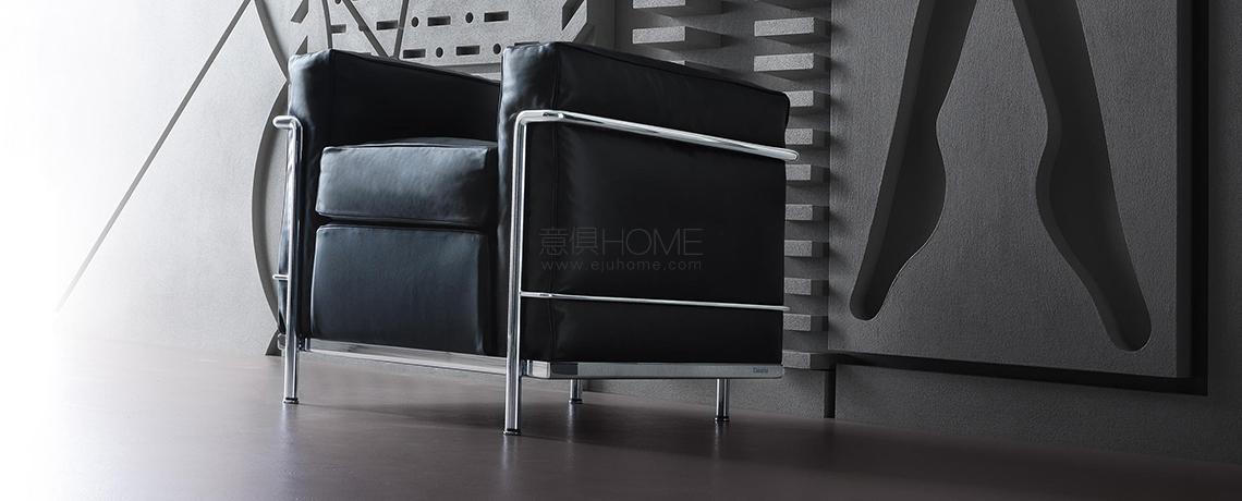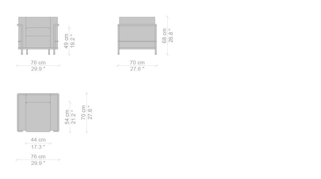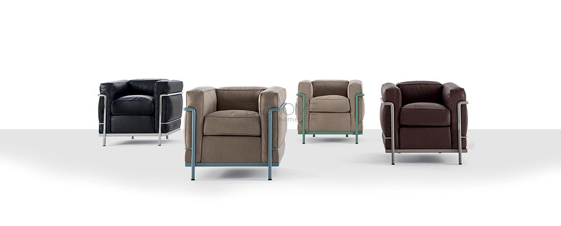 Fauteuil Grand Confort, petit modèle Poltrona, divani a due e a tre posti e pouf con strutture in acciaio cromato lucido o verniciato nella palette di colori LC. Rivestimenti dei cuscini indipendenti in tessuto o pelle.LC2 è un modello senza tempo, che ha fatto la storia del design.La poltrona, disegnata nel 1928 ed esposta al Salon d’Automne a Parigi nel 1929, è l’archetipo della poltrona nella nuova e moderna concezione degli arredi intesi come “attrezzature domestiche”, rieditata da Cassina e prodotta in esclusiva dal 1965.L’indipendenza fra la struttura metallica e i cuscini esprime logica del razionalismo: la separazione tra parti secondo una logica di produzione industriale.
