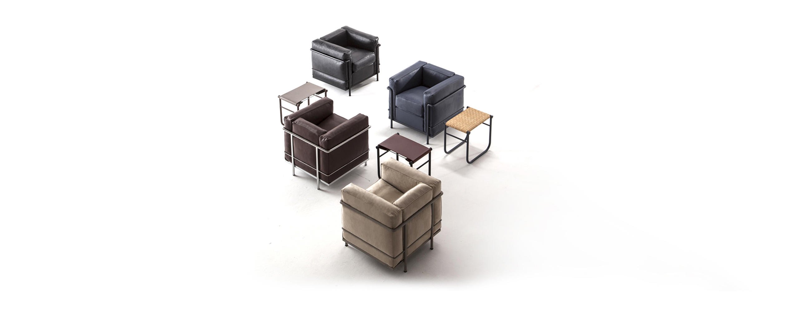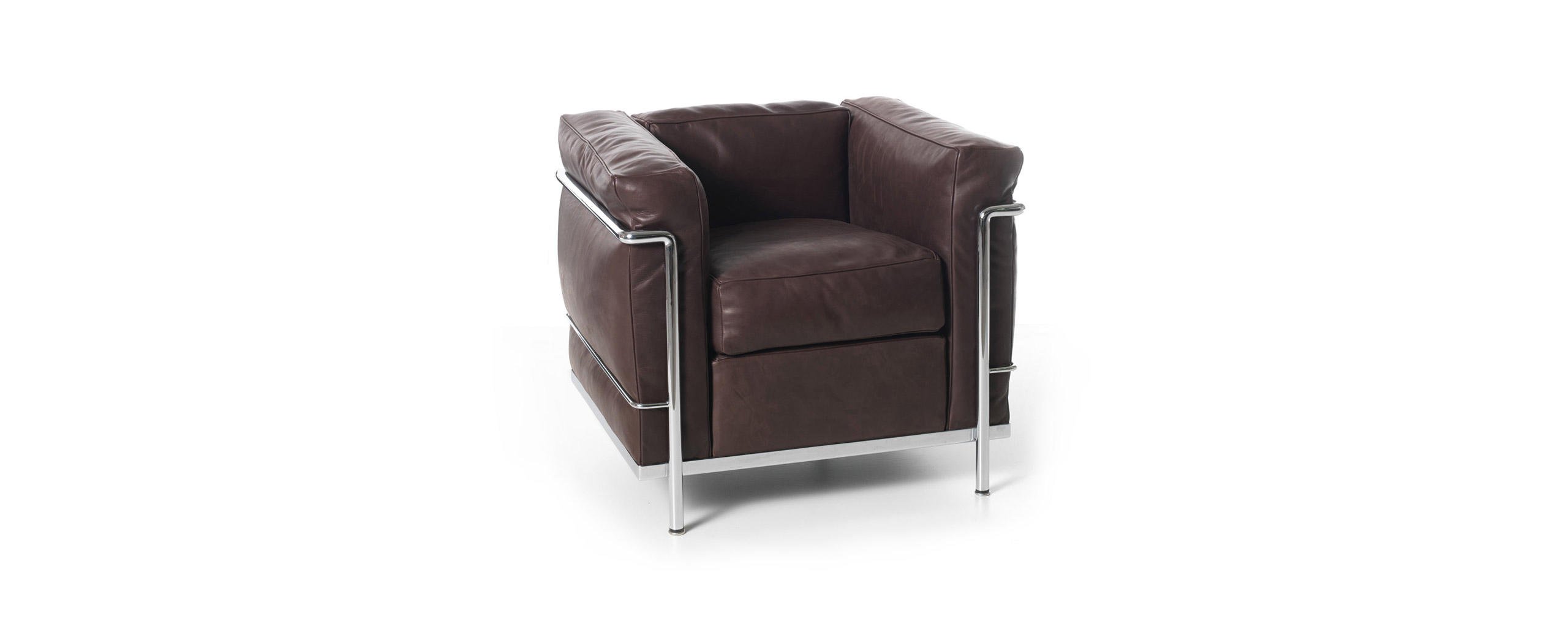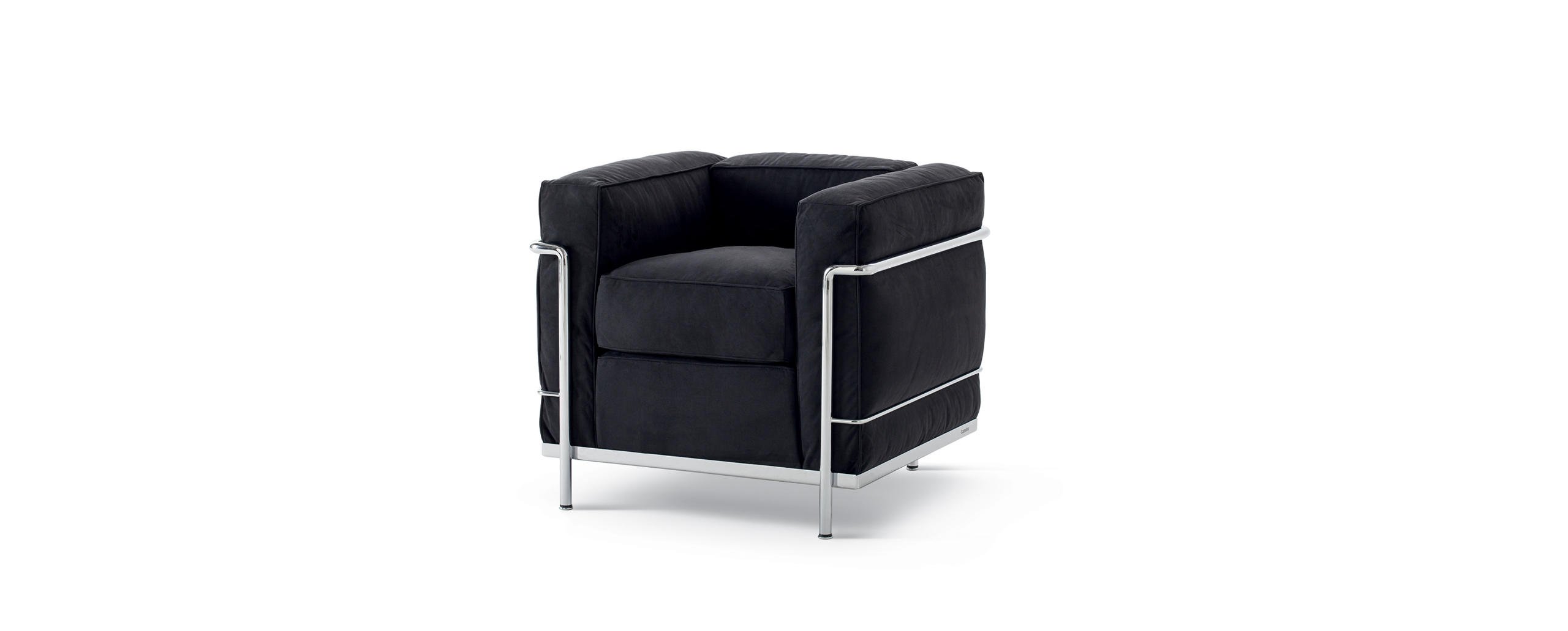 Un modello senza tempo, l’unica e autentica, che ha fatto la storia del design divenendo a pieno diritto un’icona di fama mondiale. Progettata per la comodità di conversazione, la poltrona fu esposta al Salon d’Automne a Parigi nel 1929, quale archetipo della moderna concezione degli arredi, intesi dagli autori come “attrezzature domestiche”. L’indipendenza fra la struttura metallica e i cuscini si allinea ai principi del razionalismo, così come la separazione tra le parti segue la logica della produzione industriale evocando la relazione architettonica tra la struttura portante in cemento e gli elementi di tamponamento. L’equilibrio tra forma e funzione nasce da uno studio approfondito sulla postura del corpo e dall’utilizzo del Modulor, un sistema basato sulle misure tipo del corpo umano e su un linguaggio matematico connesso alle proporzioni dell’armonia universale.