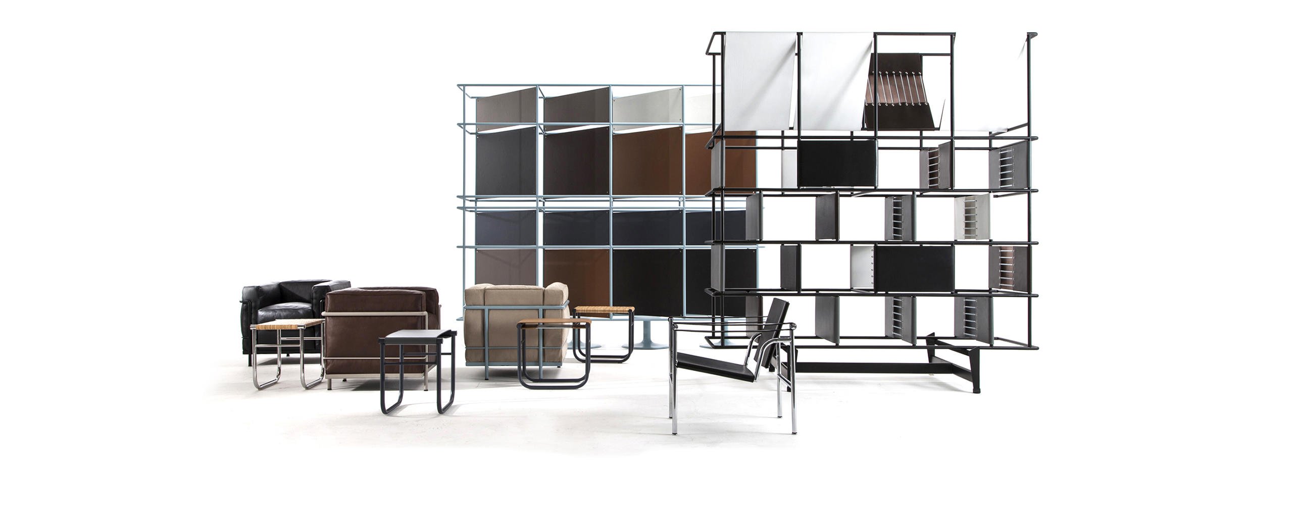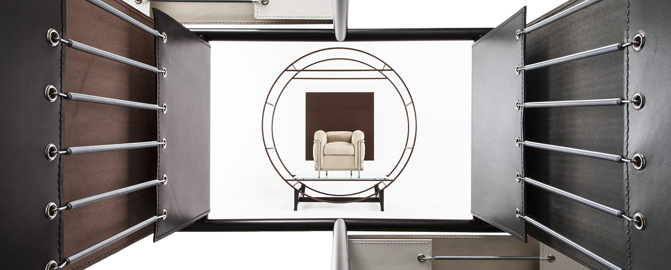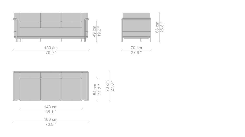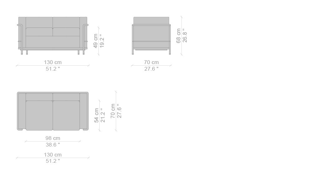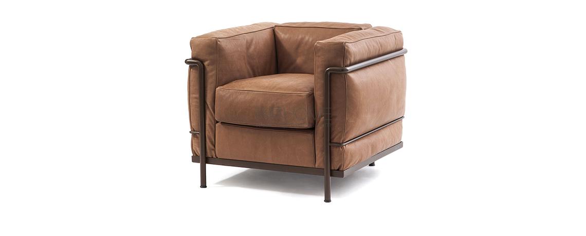 Un modello senza tempo, l’unica e autentica, che ha fatto la storia del design divenendo a pieno diritto un’icona di fama mondiale. Progettata per la comodità di conversazione, la poltrona fu esposta al Salon d’Automne a Parigi nel 1929, quale archetipo della moderna concezione degli arredi, intesi dagli autori come “attrezzature domestiche”. L’indipendenza fra la struttura metallica e i cuscini si allinea ai principi del razionalismo, così come la separazione tra le parti segue la logica della produzione industriale evocando la relazione architettonica tra la struttura portante in cemento e gli elementi di tamponamento. L’equilibrio tra forma e funzione nasce da uno studio approfondito sulla postura del corpo e dall’utilizzo del Modulor, un sistema basato sulle misure tipo del corpo umano e su un linguaggio matematico connesso alle proporzioni dell’armonia universale.