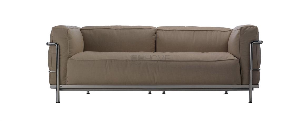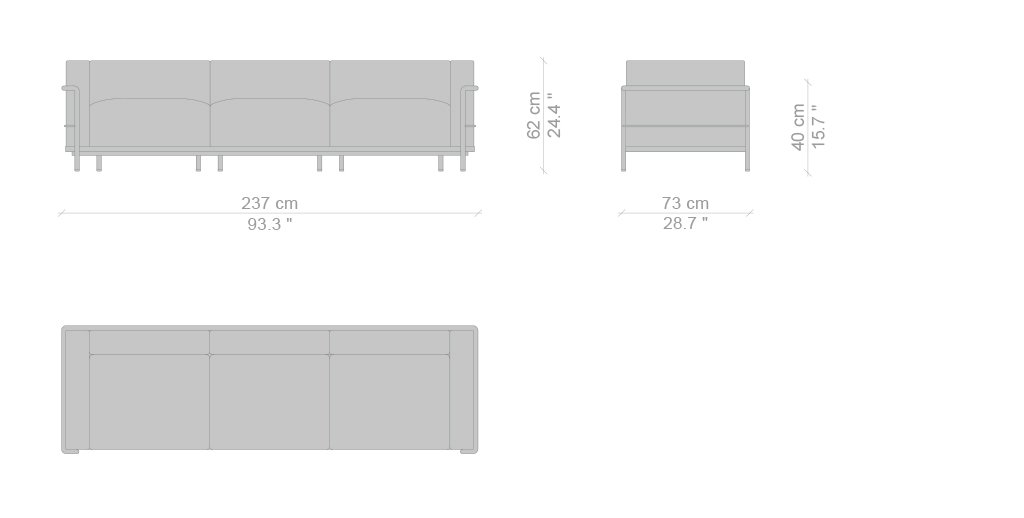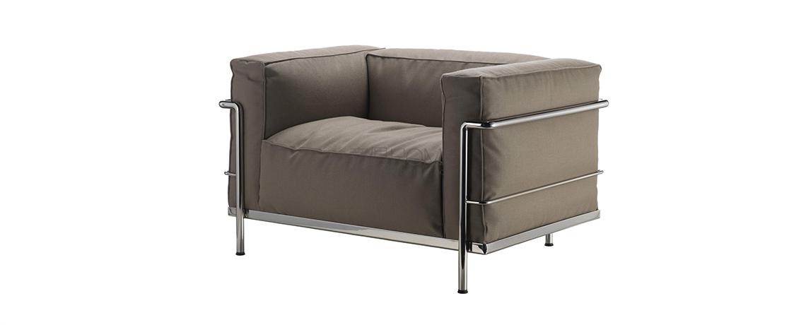 Con LC3 la logica della modernità attua una separazione tra la struttura portante in metallo e gli elementi imbottiti, richiamando la relazione architettonica tra la struttura portante in cemento e gli elementi di tamponamento. In questo caso quattro cuscini, privi di legami, sono disposti in una gabbia di tubi di acciaio verniciato o cromato che costituisce il supporto primario del mobile in ogni sua tipologia, dalla poltrona con bracciolo singolo o doppio ai divani a due o tre posti. Nel corso degli anni Cassina ha collaborato a stretto contatto con Charlotte Perriand, con la sua erede e con la Fondatiòn Le Corbusier per introdurre nuove versioni e finiture che pur reinterpretando il progetto originale ne rispettano pienamente l’autenticità. Tra queste spicca la variante LC3 Outdoor, con struttura in acciaio inossidabile e una speciale verniciatura goffrata in 5 colori. Le cuscinature sono rivestite con tela idrorepellente.a garantire massima durata e affidabilità in tutte le condizioni climatiche.