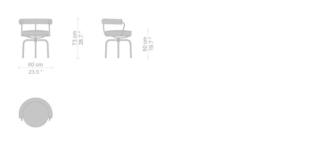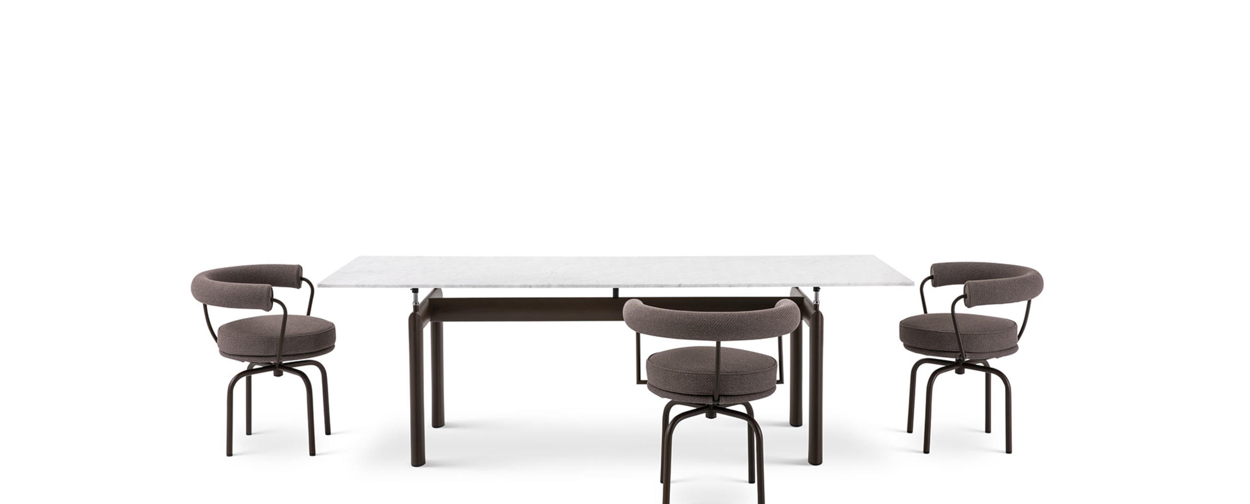 Un’icona dall’anima versatile e funzionale, disegnata nel 1927 da Charlotte Perriand per il suo appartamento parigino di Place Saint-Sulpice. Il progetto fu dapprima presentato al Salon des Artistes Décorateurs del 1928 e in seguito esposto al Salon d'Automne nel 1929, integrato alla collezione co-creata da Charlotte Perriand insieme a Le Corbusier e Pierre Jeanneret. La poltroncina girevole, disponibile nella versione con 4 o 5 gambe, è caratterizzata dallo schienale e dal cuscino-sedile imbottiti in poliuretano espanso e ovatta di poliestere, con rivestimento in pelle o in tessuto. La versione outdoor è realizzata in acciaio inossidabile verniciato con vernici a polvere specifiche per esterno in 5 colori goffrati e un particolare rivestimento in tessuto filato di poliestere che riproduce l’estetica dei modelli da interno. A partire dal 2016 la poltroncina è stata oggetto di un importante aggiornamento strutturale che ha portato all’ottenimento delle certificazioni Catas.