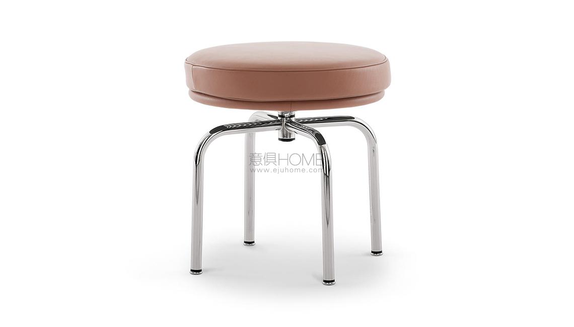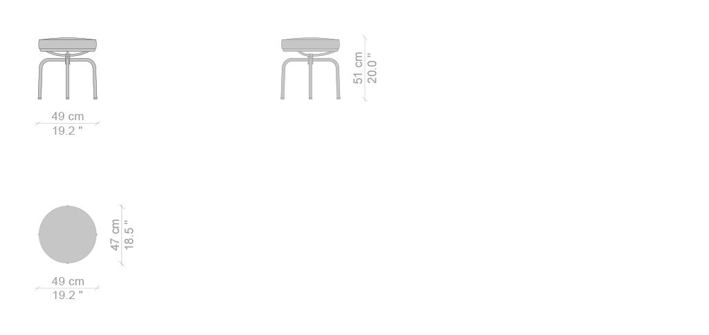 Lo sgabello LC8 trae ispirazione dalla poltroncina girevole disegnata nel 1927 da Charlotte Perriand per il suo appartamento di Place Saint-Sulpice a Parigi, anch’esso parte del programma di arredi esposto al Salon d’Automne nel 1929. La sua forma iconica e versatile, inserita alla collezione co-firmata con Le Corbusier e Pierre Jeanneret, risponde alla volontà di razionalizzare la produzione in serie utilizzano elementi comuni. La struttura in acciaio cromato trivalente, lucido o verniciato, presenta un’imbottitura in ovatta di poliestere e poliuretano espanso schiumato privo di CFC, con rivestimento in pelle o tessuto. Lo sgabello, disponibile anche nella versione outdoor, ha ottenuto le certificazioni Catas grazie all’aggiornamento strutturale compiuto da Cassina nel 2016.