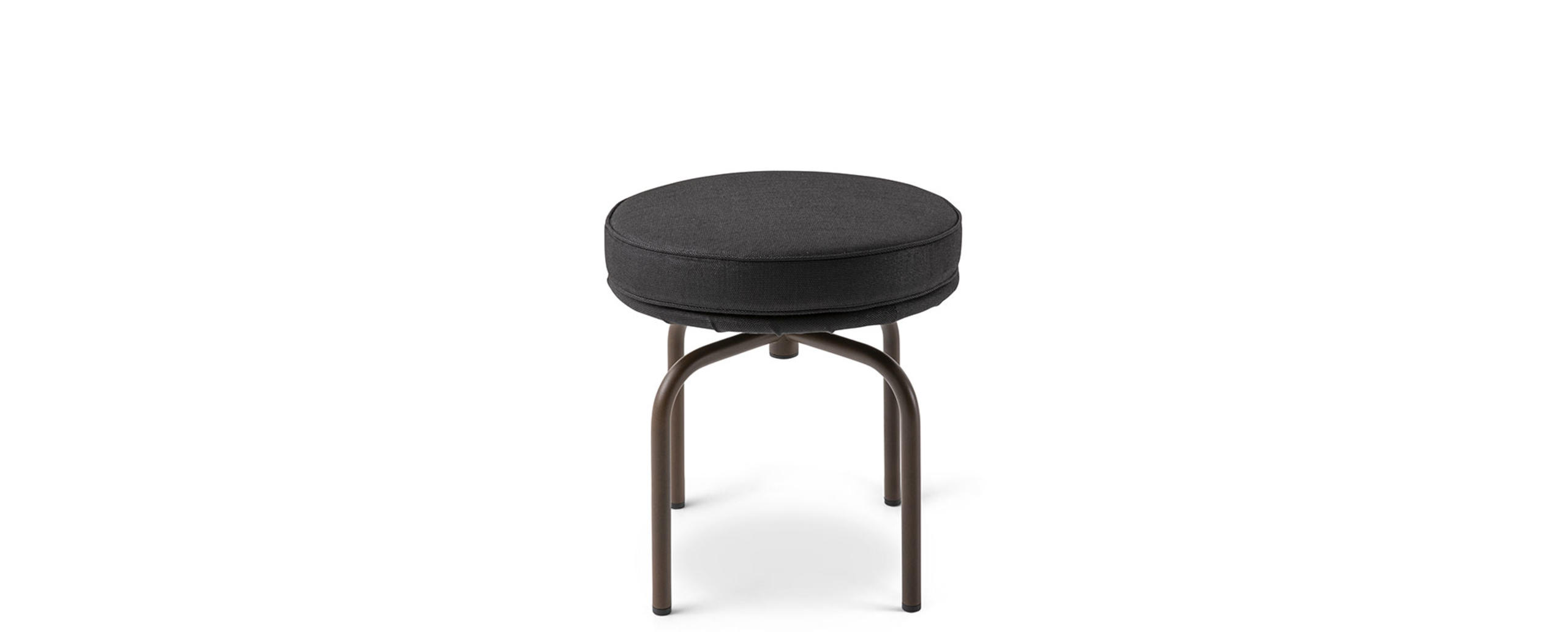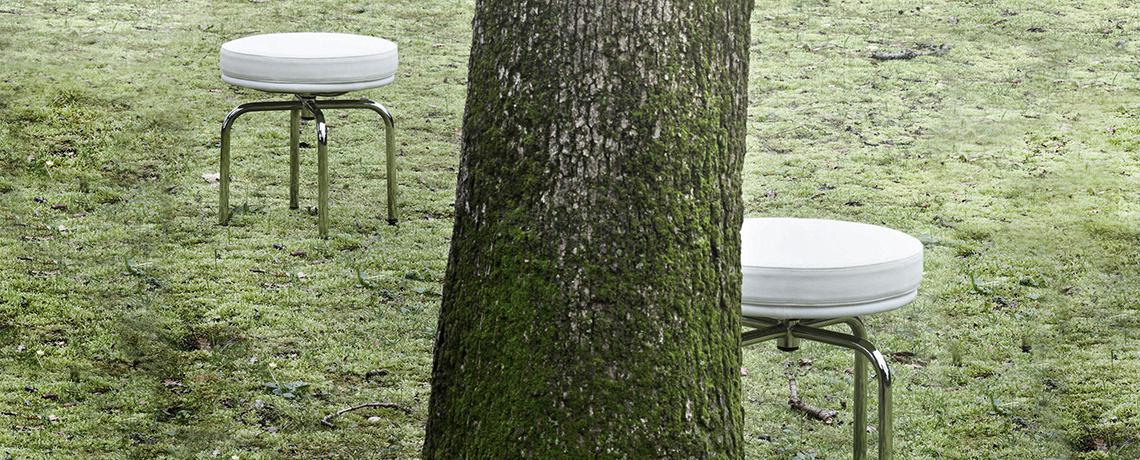 Lo sgabello LC8 trae ispirazione dalla poltroncina girevole disegnata nel 1927 da Charlotte Perriand per il suo appartamento di Place Saint-Sulpice a Parigi, anch’esso parte del programma di arredi esposto al Salon d’Automne nel 1929. La sua forma iconica e versatile, inserita alla collezione co-firmata con Le Corbusier e Pierre Jeanneret, risponde alla volontà di razionalizzare la produzione in serie utilizzano elementi comuni. La struttura in acciaio cromato trivalente, lucido o verniciato, presenta un’imbottitura in ovatta di poliestere e poliuretano espanso schiumato privo di CFC, con rivestimento in pelle o tessuto. Lo sgabello, disponibile anche nella versione outdoor con struttura in acciaio inossidabile verniciato con vernici a polvere specifiche per esterno in 5 colori goffrati, ha ottenuto le certificazioni Catas grazie all’aggiornamento strutturale compiuto da Cassina nel 2016.