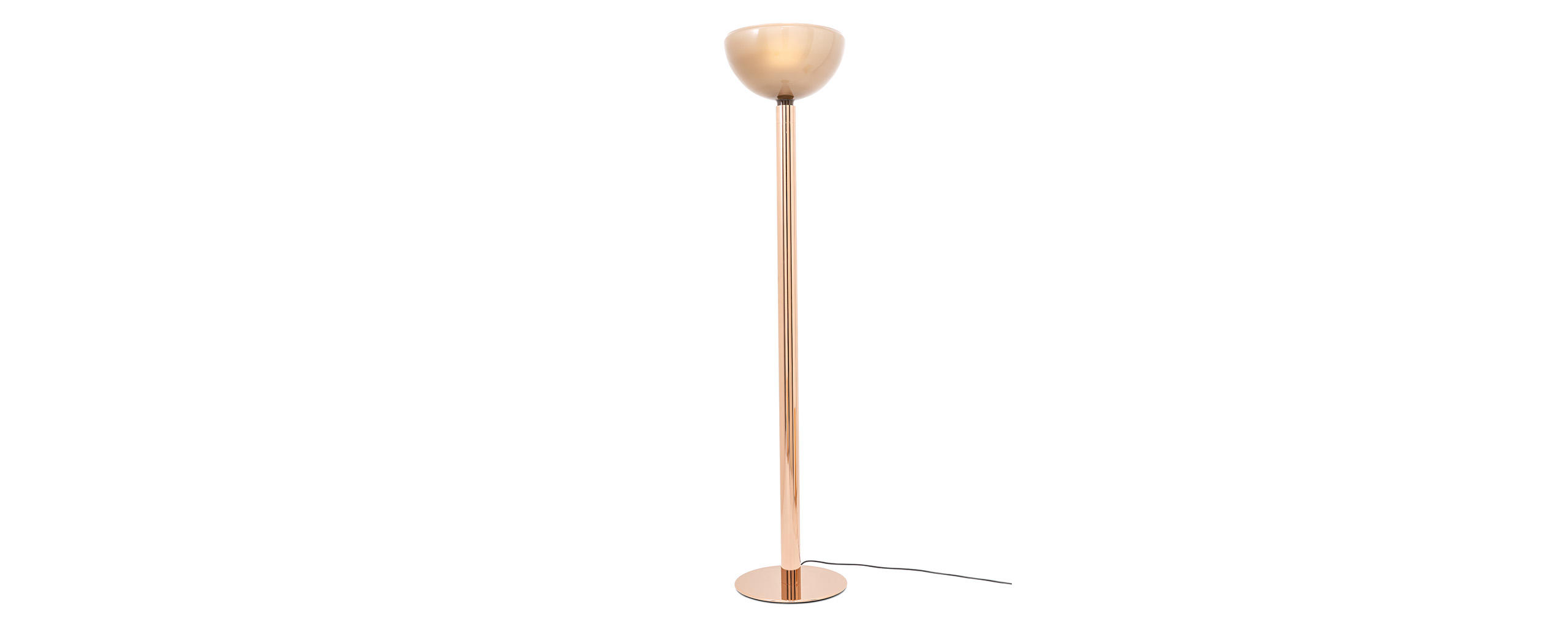 A metà degli anni ’60, Franco Albini, insieme a Franca Helg, Antonio Piva, Marco Albini, progetta la serie di lampade AM/AS, la cui caratteristica principale è data dal sistema di giunti tra i corpi illuminanti e le strutture e dalla possibilità di combinare elementi diversi per dar vita a molteplici configurazioni d’uso. Modularità, cura dei materiali, controllo della forma caratterizzano questo progetto di design del Maestro italiano, che l’azienda Nemo produce dal 2008. In questa edizione esclusiva per Cassina, la struttura della lampada da terra è in oro rosa, mentre il diffusore è realizzato in vetro tortora. La luce è diffusa verso l’alto, regolabile in intensità grazie al dimmer posto sul cavo di alimentazione.