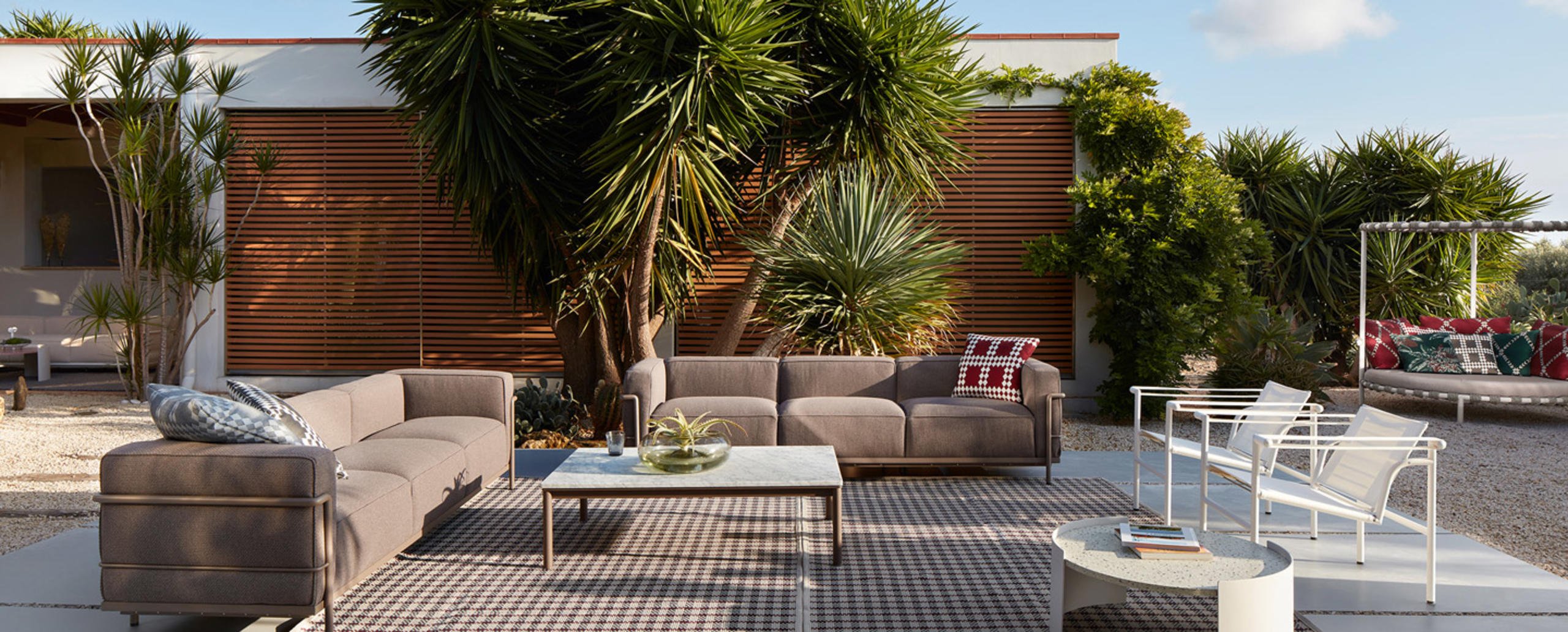 I tavolini Bowy, con forme smussate come lo stesso originale divano per interni disegnato da Patricia Urquiola nel 2018, vengono proposti anche in versione outdoor. Sovrapponibili e intersecabili, arredano l’ambiente living all'aria aperta con due diverse misure, accomunate dalla struttura in lamiera di alluminio verniciata nelle finiture goffrato fango e goffrato avorio, e dal piano in vetroresina riciclata RFM?, disponibile nei colori bianco e rosso o bianco e grigio.