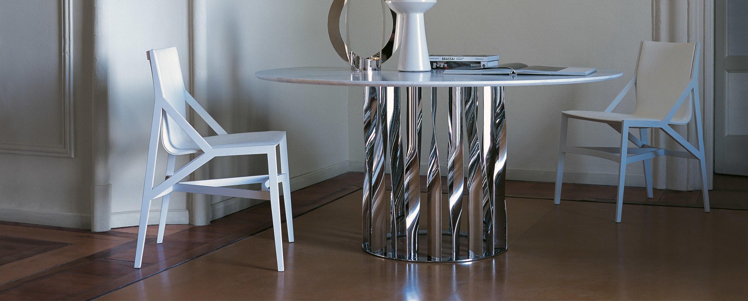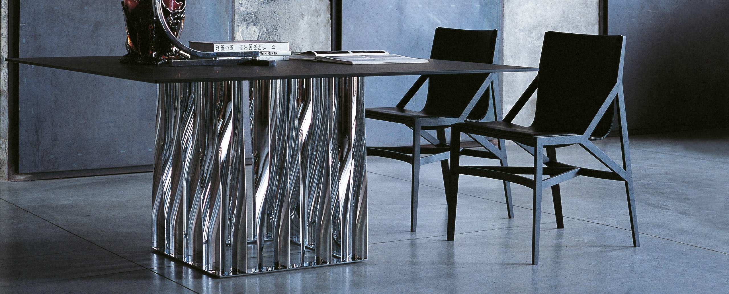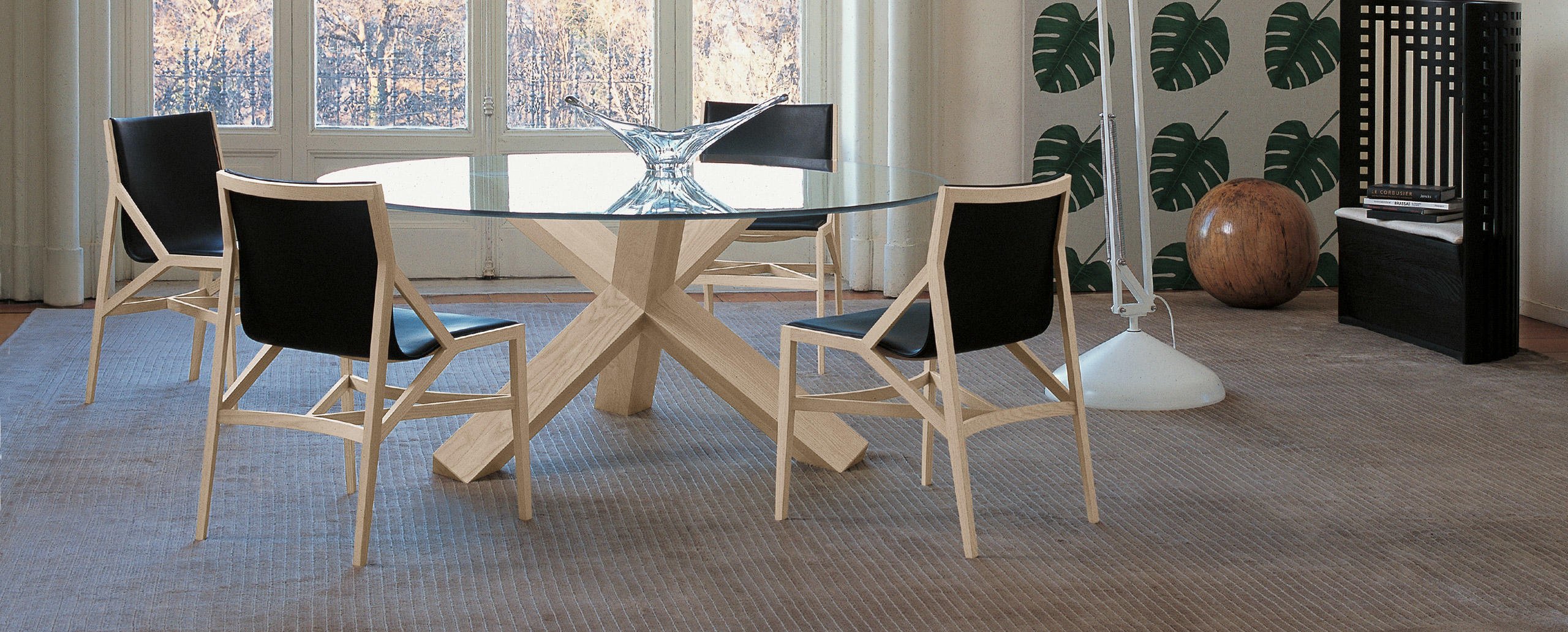 Con la sua struttura in legno, tra i modelli più complessi realizzati da Cassina, Pilotta disegna con eleganza lo spazio adatto alla conversazione. Le forme solide e rigorose rivelano un senso di leggerezza che mette in risalto la qualità concreta dell’oggetto. L’accurato lavoro di modellatura dei profili in legno si unisce ad uno studio minuzioso sugli incastri, assemblati con infinita maestria dai falegnami di Meda. L’elaborata struttura in frassino è costruita con una serie di elementi diagonali che diventano controventature di sostegno per la sottile scocca in poliuretano flessibile. Il design asciutto e distintivo si completa di una seduta a nastro, ricoperta in pelle, che abbina comfort e stabilità.