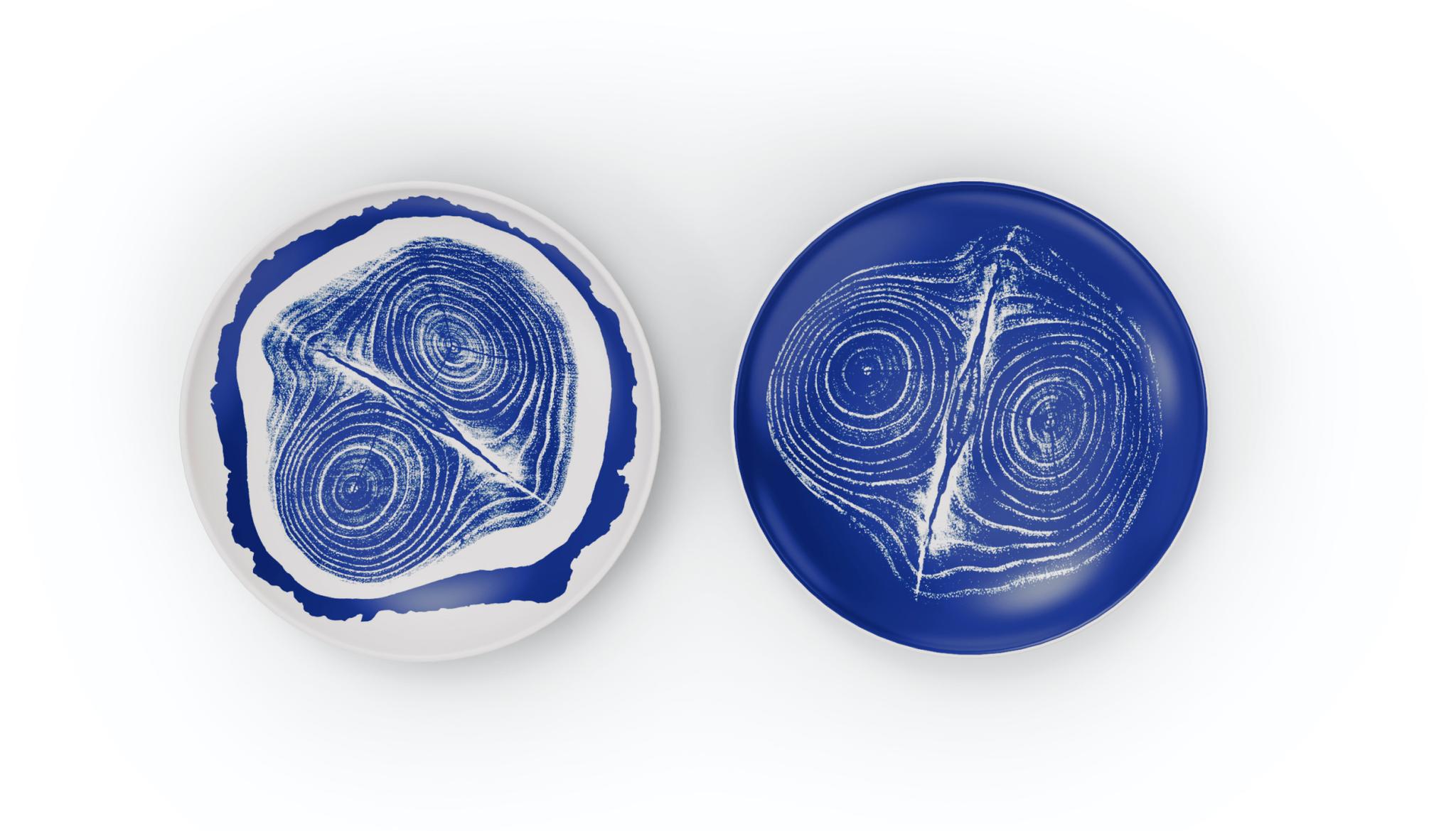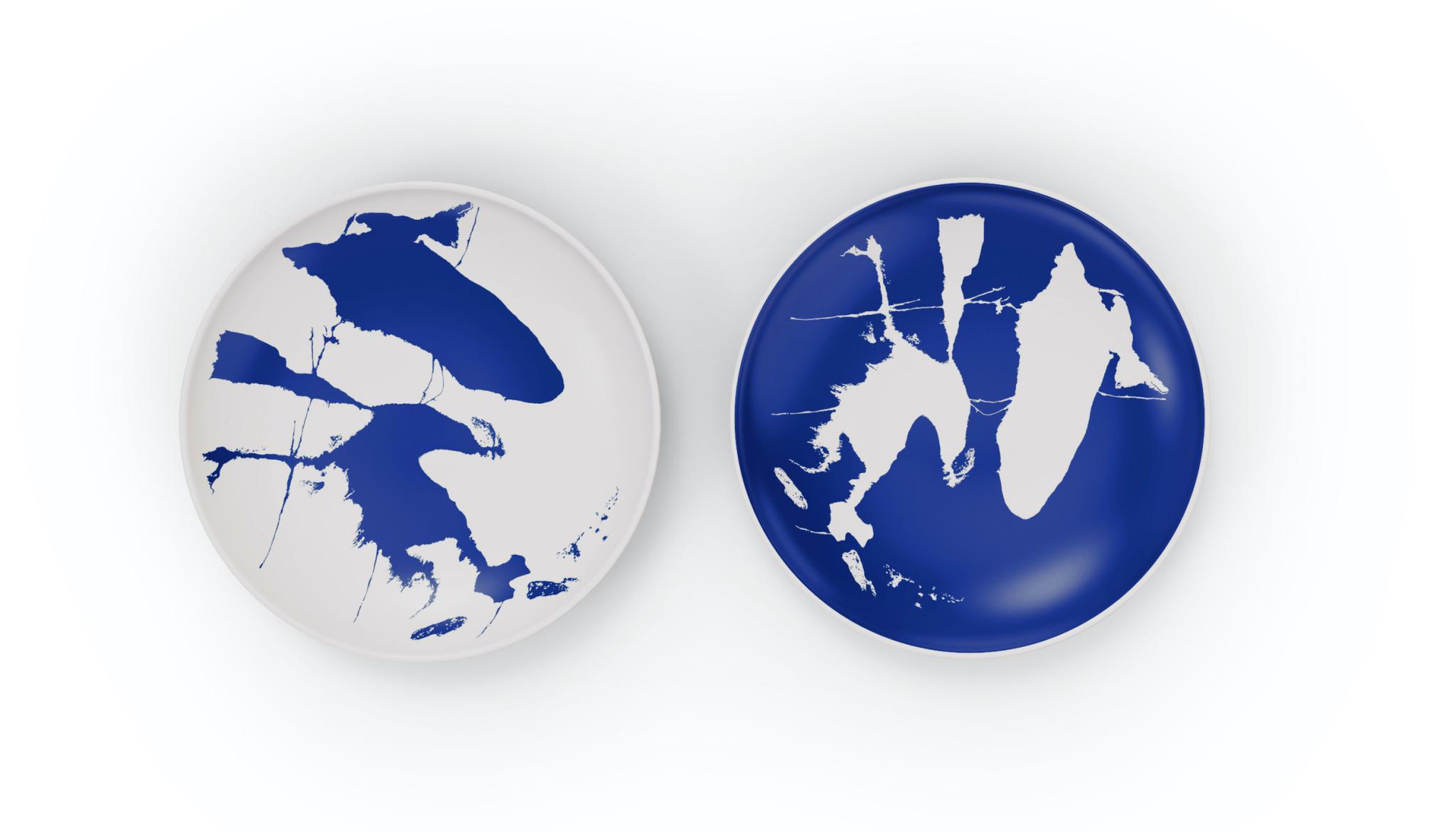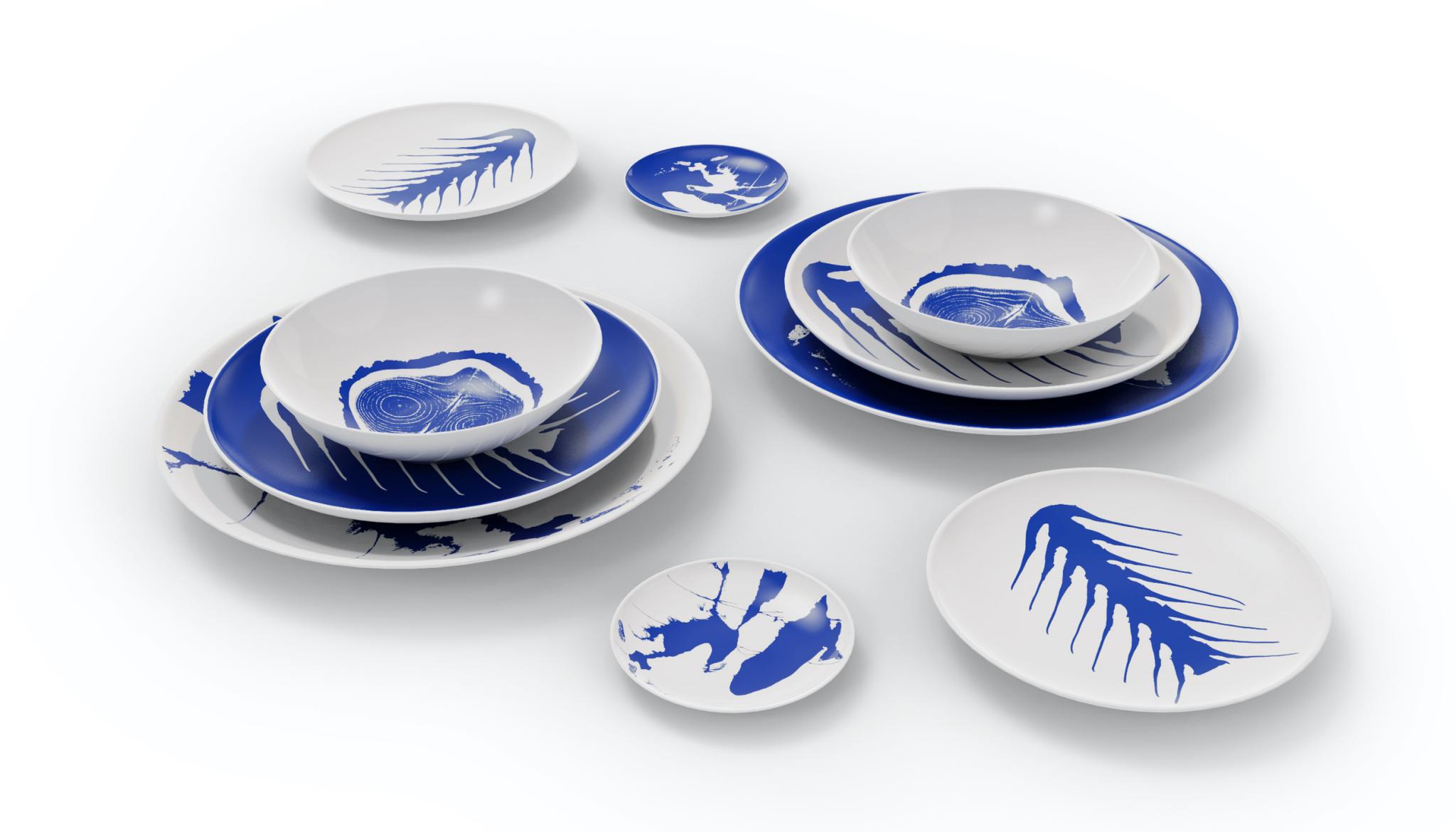 The finest porcelain dinner set inspired by the photography of Charlotte Perriand. Hand decorated and characterised by patterns that combine the colours blue and white, this striking set of plates is the perfect proposal to embellish any dinner table.